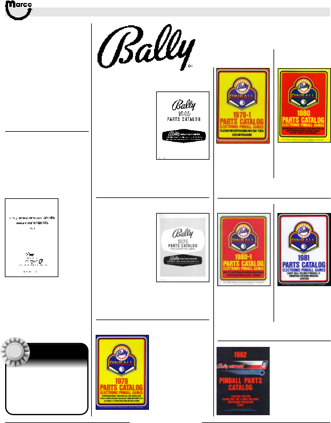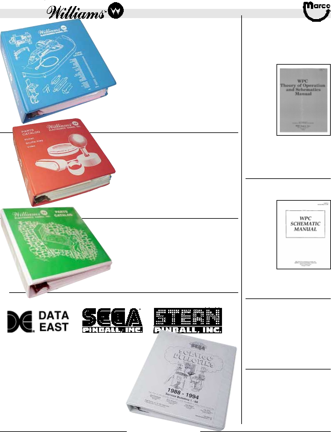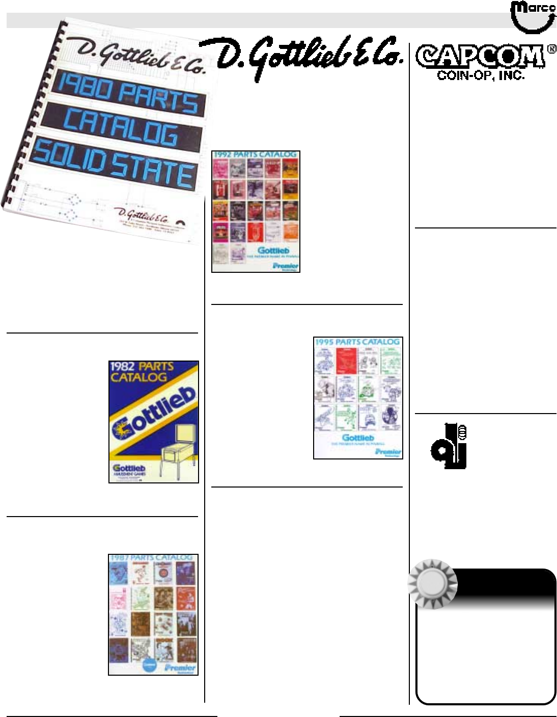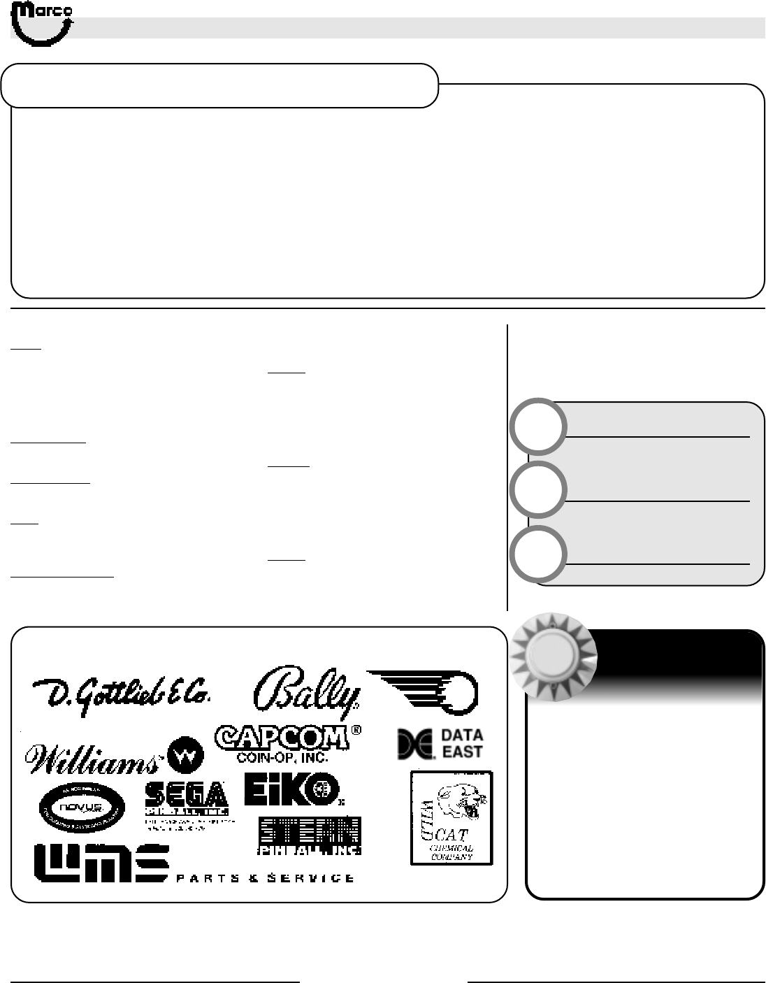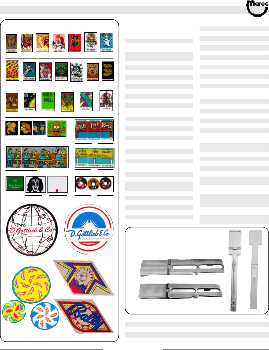 All catalog contents ©2000 Marco Specialties, Inc. The names: Williams, Bally, Midway, Atari, Sega, Stern, Capcom. Gottlieb, Data East and any other coin operated