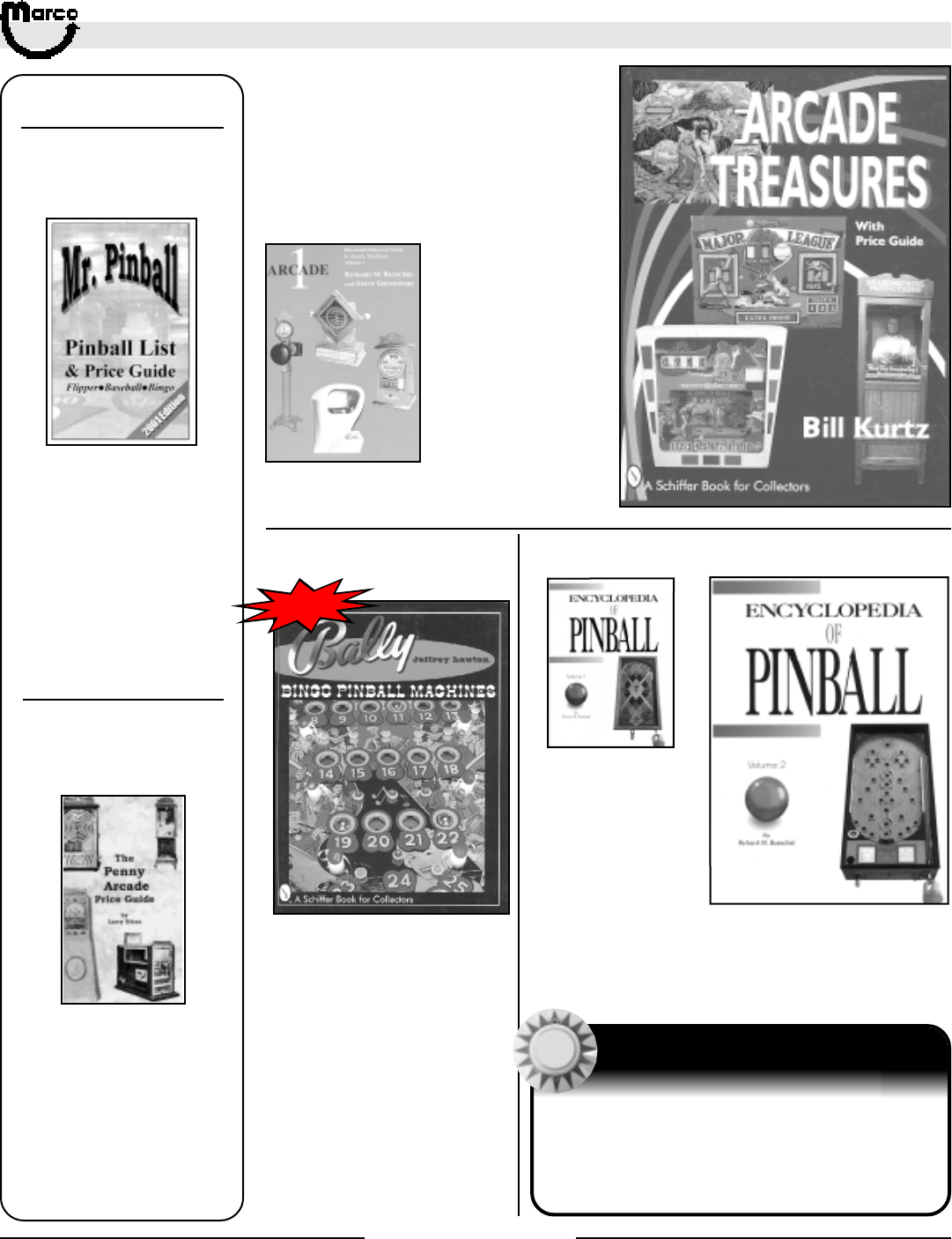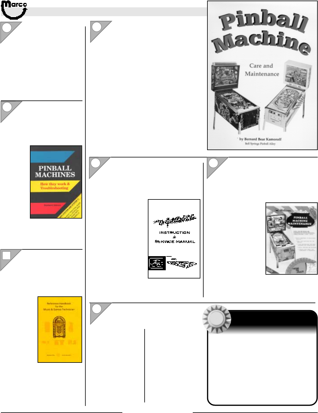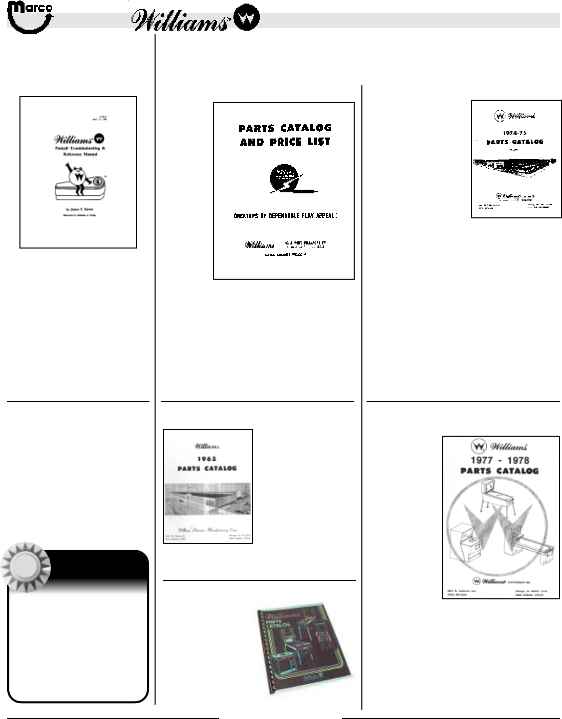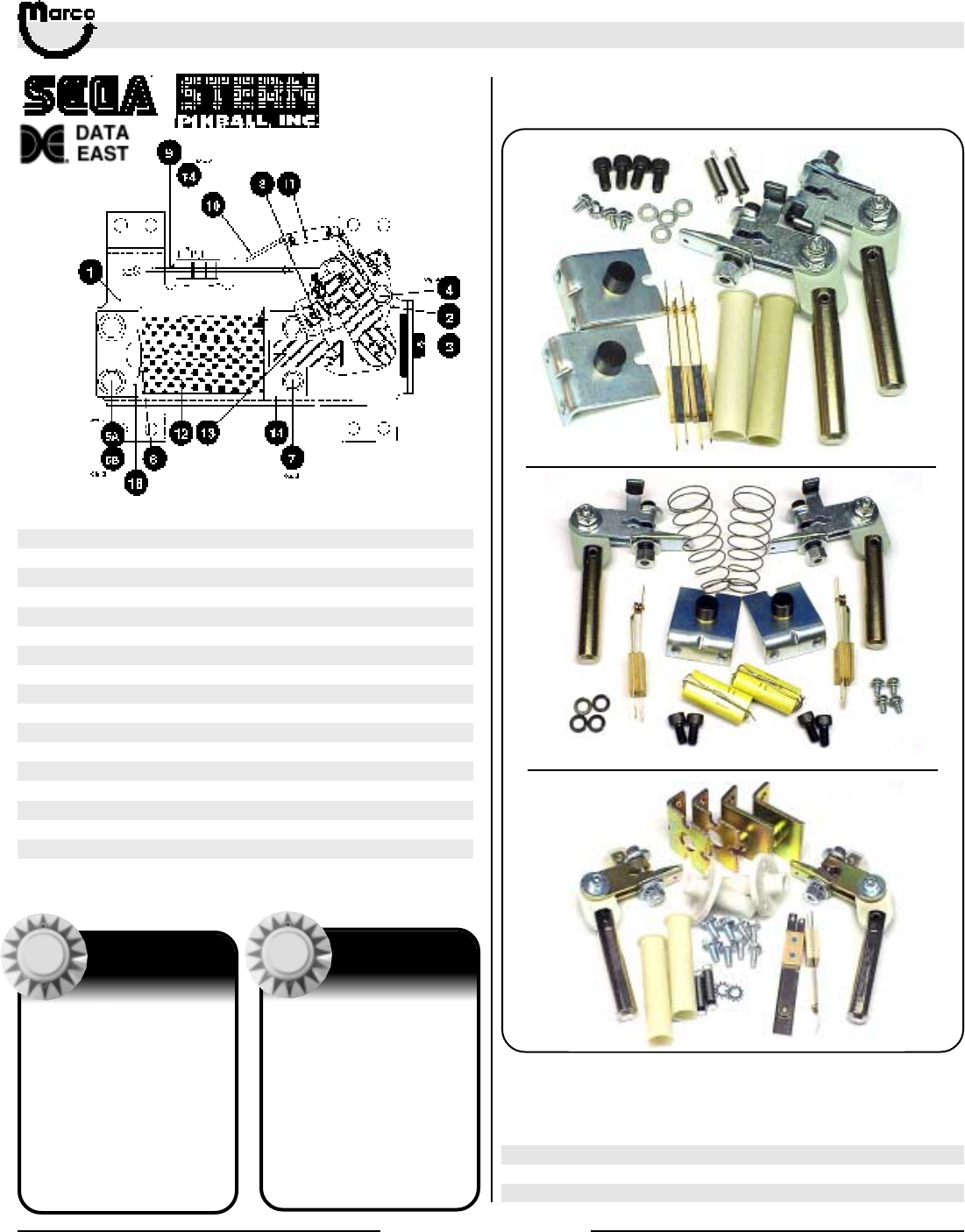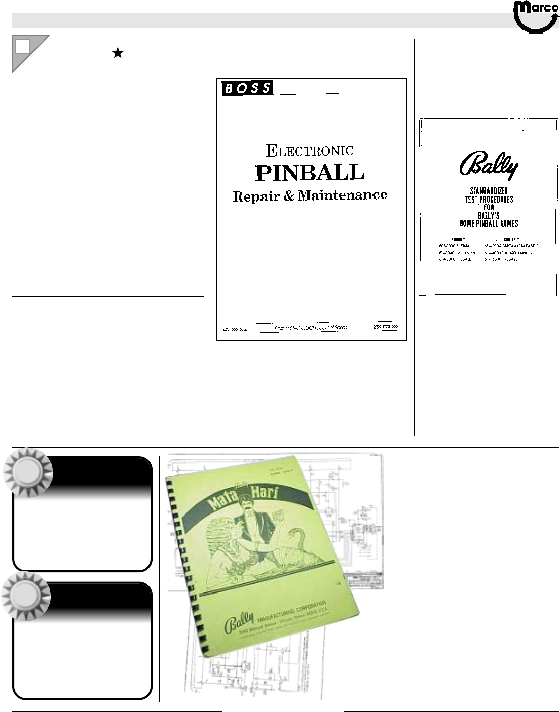 All catalog contents ©2000 Marco Specialties, Inc. The names: Williams, Bally, Midway, Atari, Sega, Stern, Capcom. Gottlieb, Data East and any other coin operated