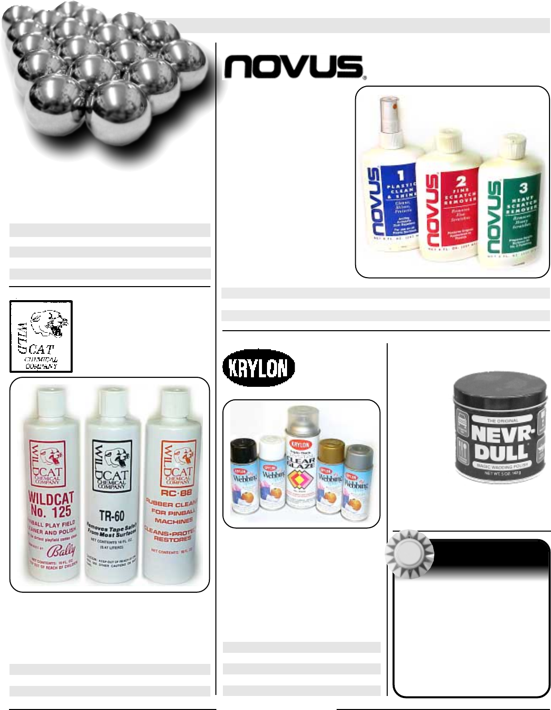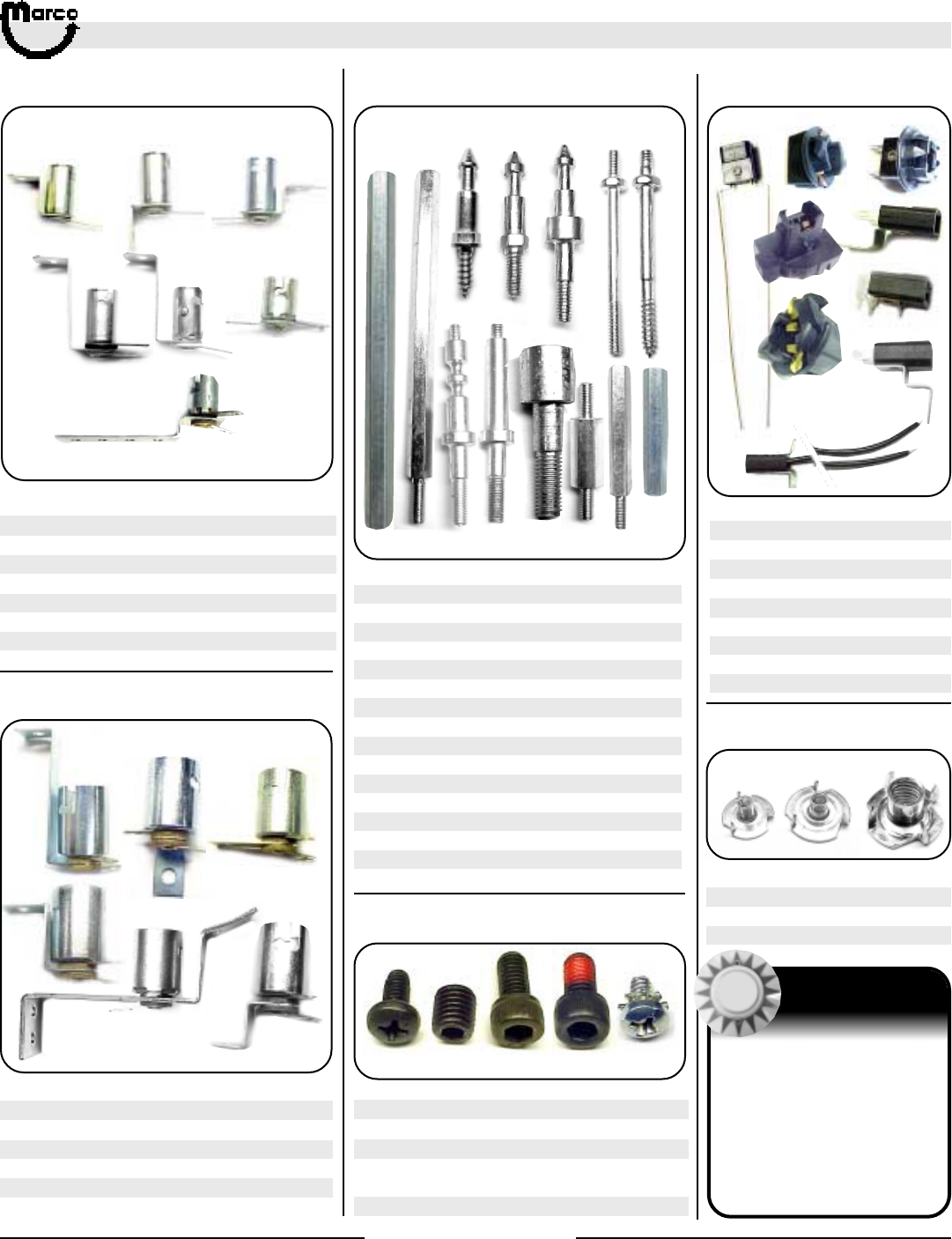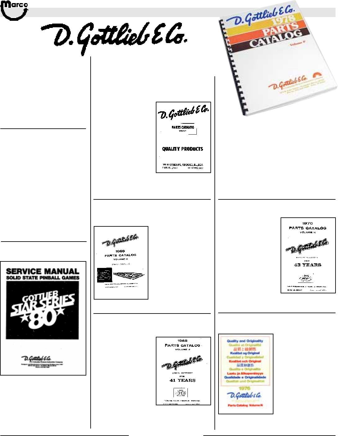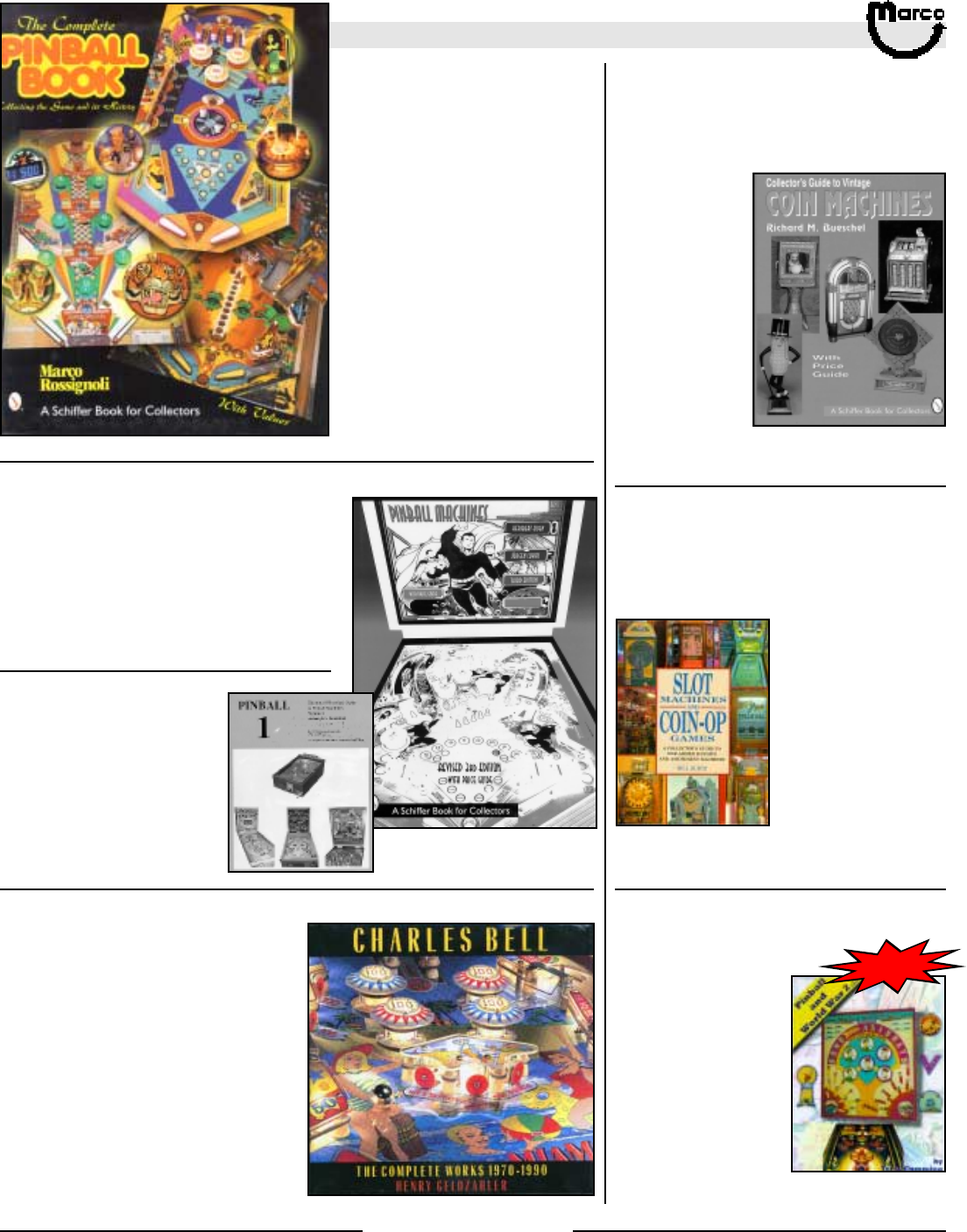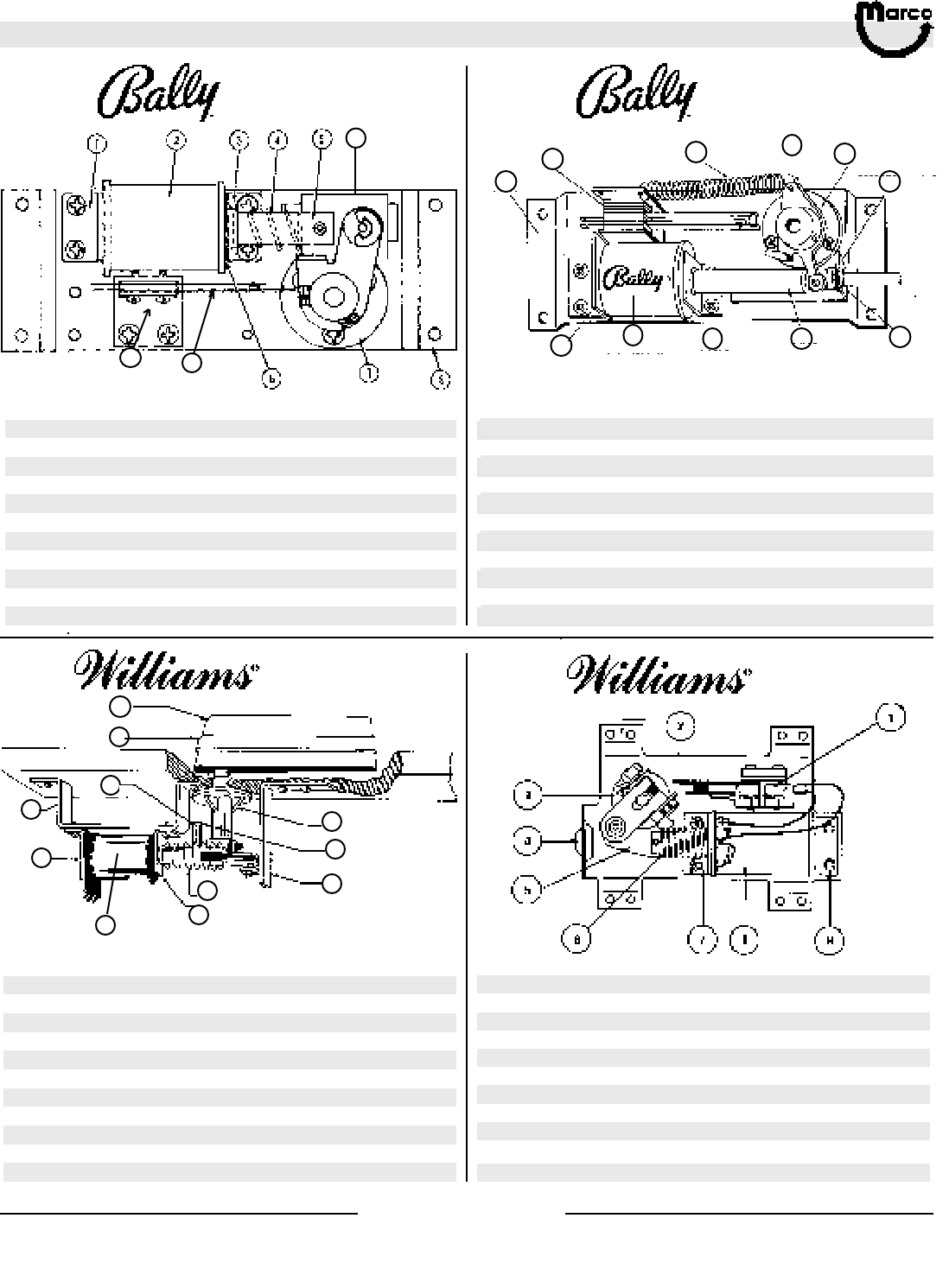 All catalog contents ©2000 Marco Specialties, Inc. The names: Williams, Bally, Midway, Atari, Sega, Stern, Capcom. Gottlieb, Data East and any other coin operated