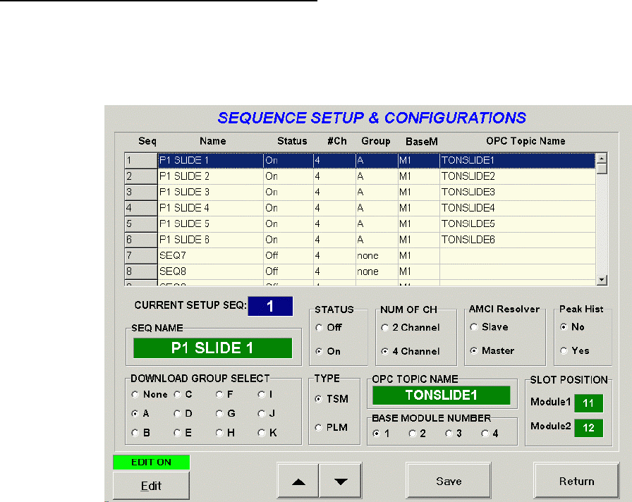 Figure B11 –SEQUENCE CONFIGURATION WINDOW