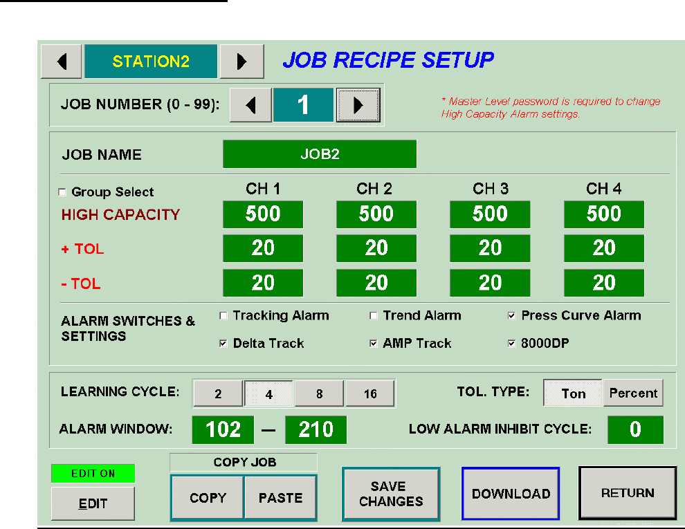 Figure B12 – JOB RECIPE SETUP SCREEN