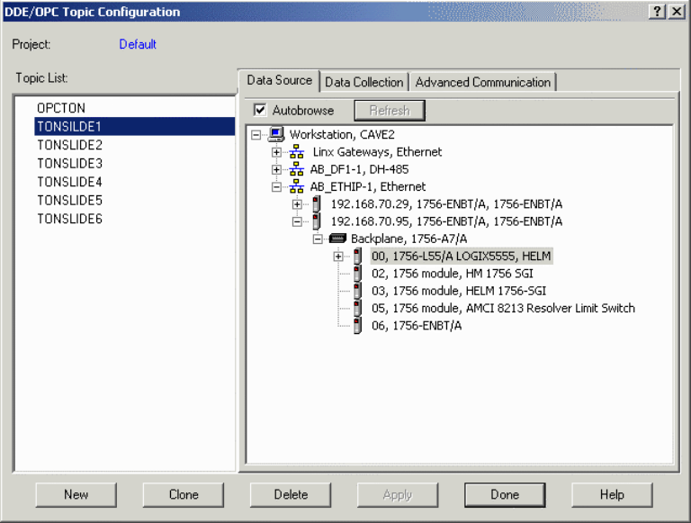 1. First, you need to set up the OPC Topics for each ControlLogix processor for all slides from
