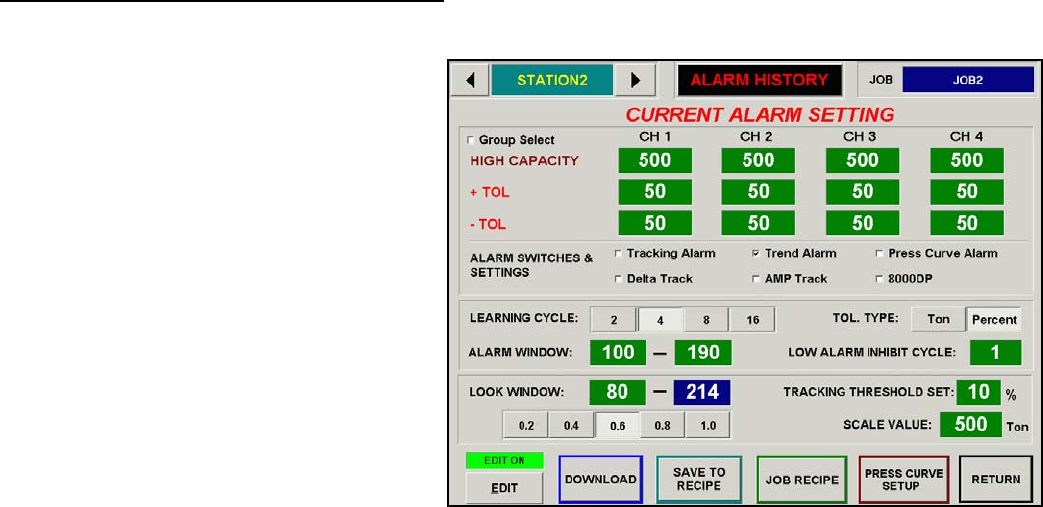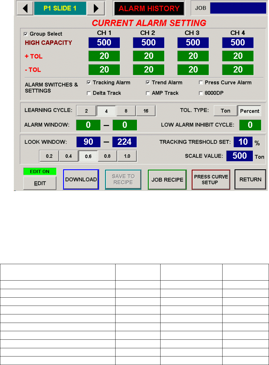 - LOW TOL Low tolerance setting value in ton or percent for th