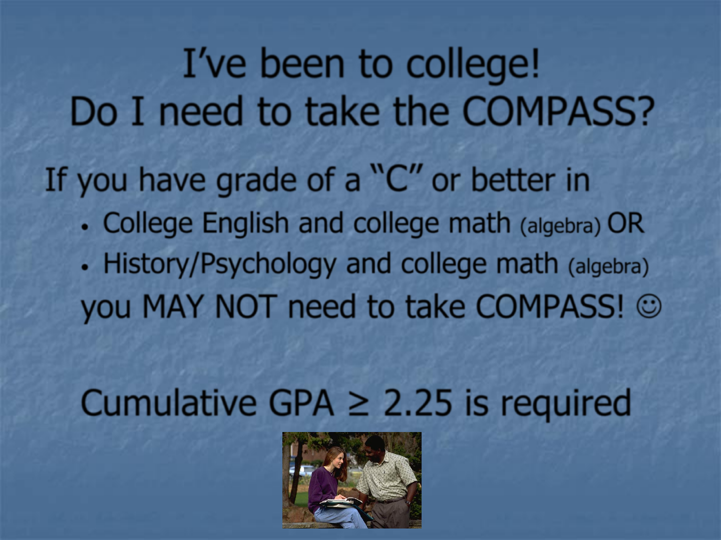 you MAY NOT need to take COMPASS!