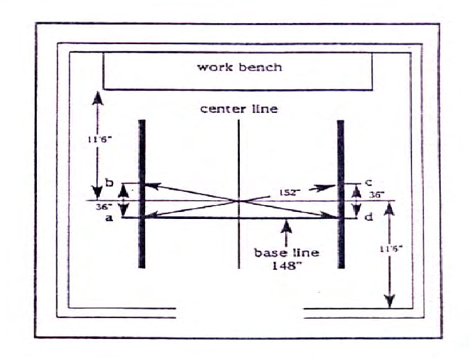 NOTE: You should have 36’’between points “a” and “b” just as with “c” and “d”. If not, find