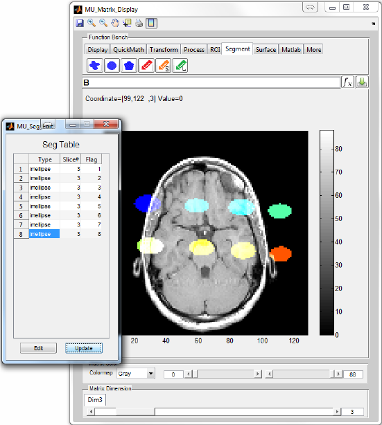 MatrixUser supports functions for performing multi-slice manual segmen-