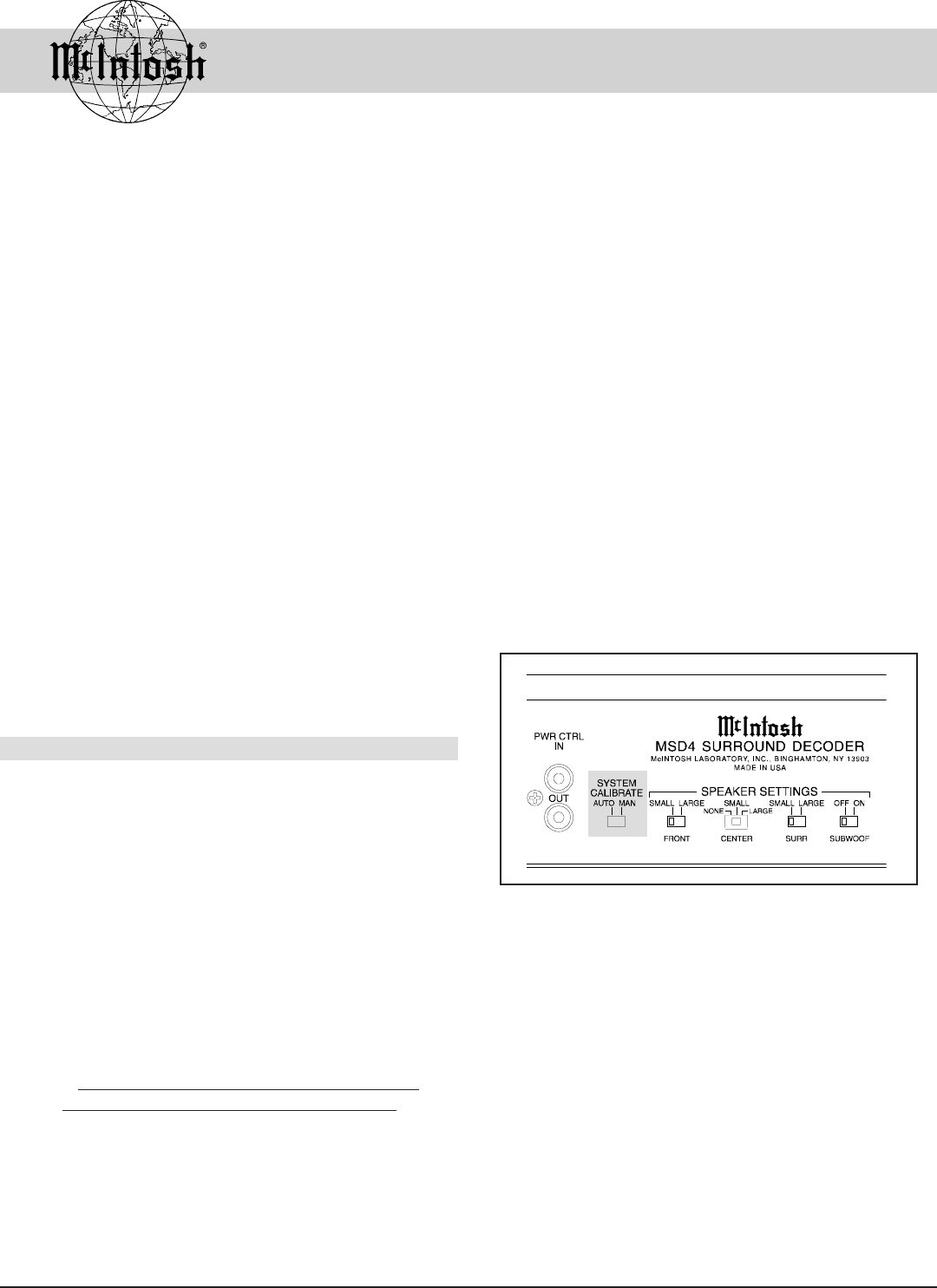 MSD4 Surround Decoder, contact your McIntosh dealer.