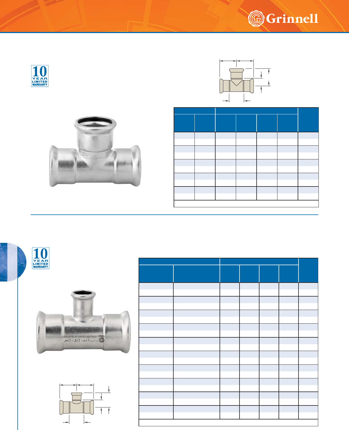 Tee and Reducing Tee Adapters (Press x Press x Female NPT) .......................................163