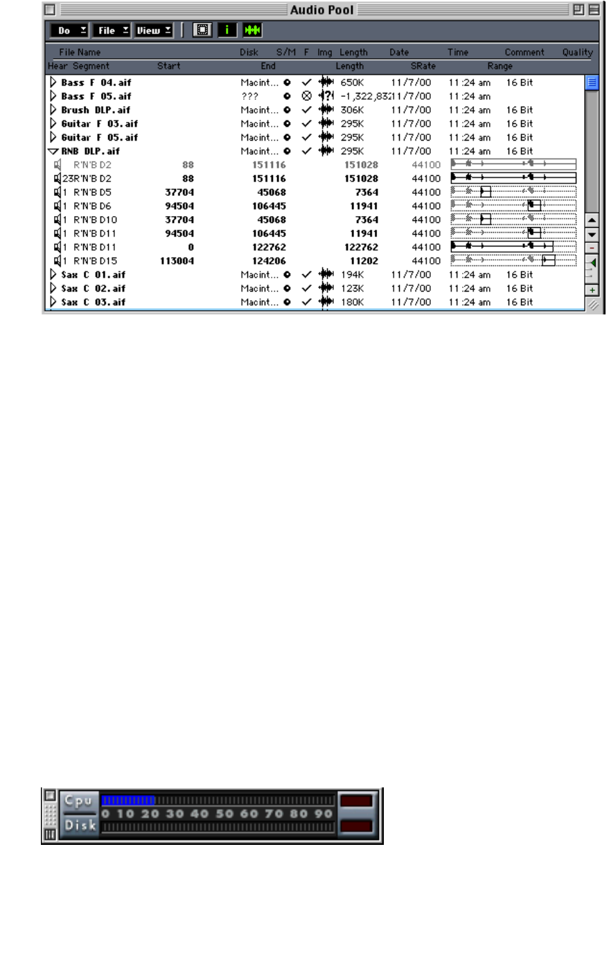 File menu in the Pool. A segment that plays the whole file is created and placed in an Audio