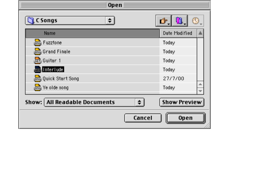 selected as Audio Files Folder. There can only be one Song open at a time.