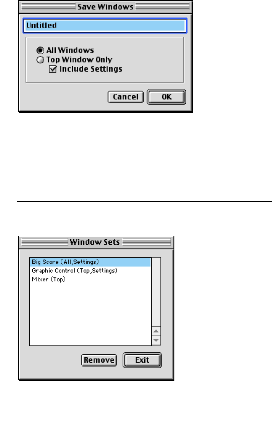 name) or for deleting Window Sets (select a set in the list and click Remove).