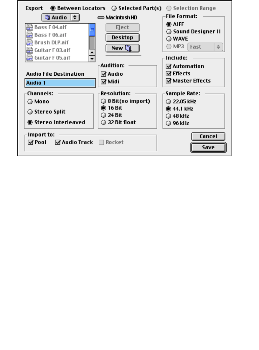Part, which in turn is placed on the selected Audio Track, at the position of the Left Locator.