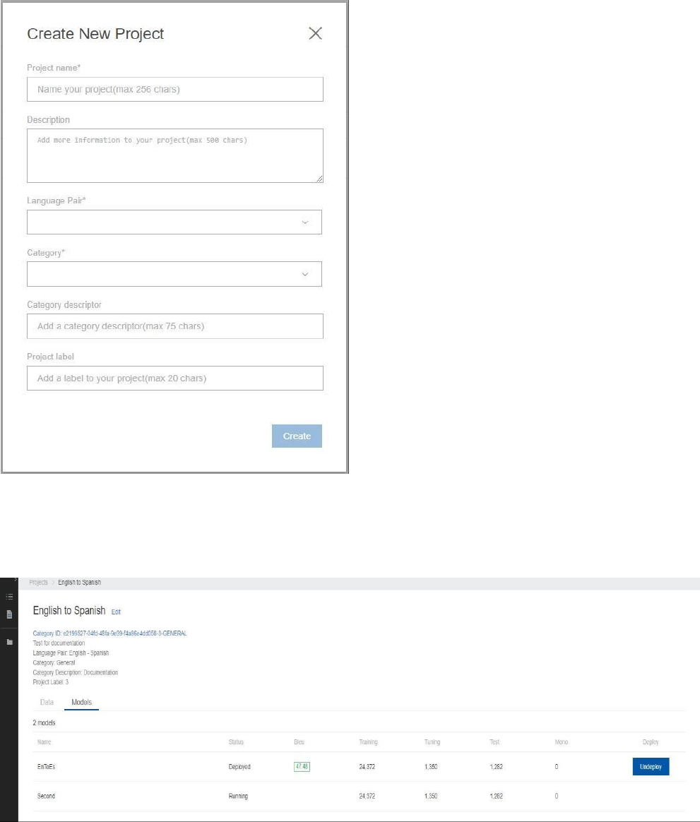Section 2.  “Building a Translation System” covers topics such as how to create a project and then train