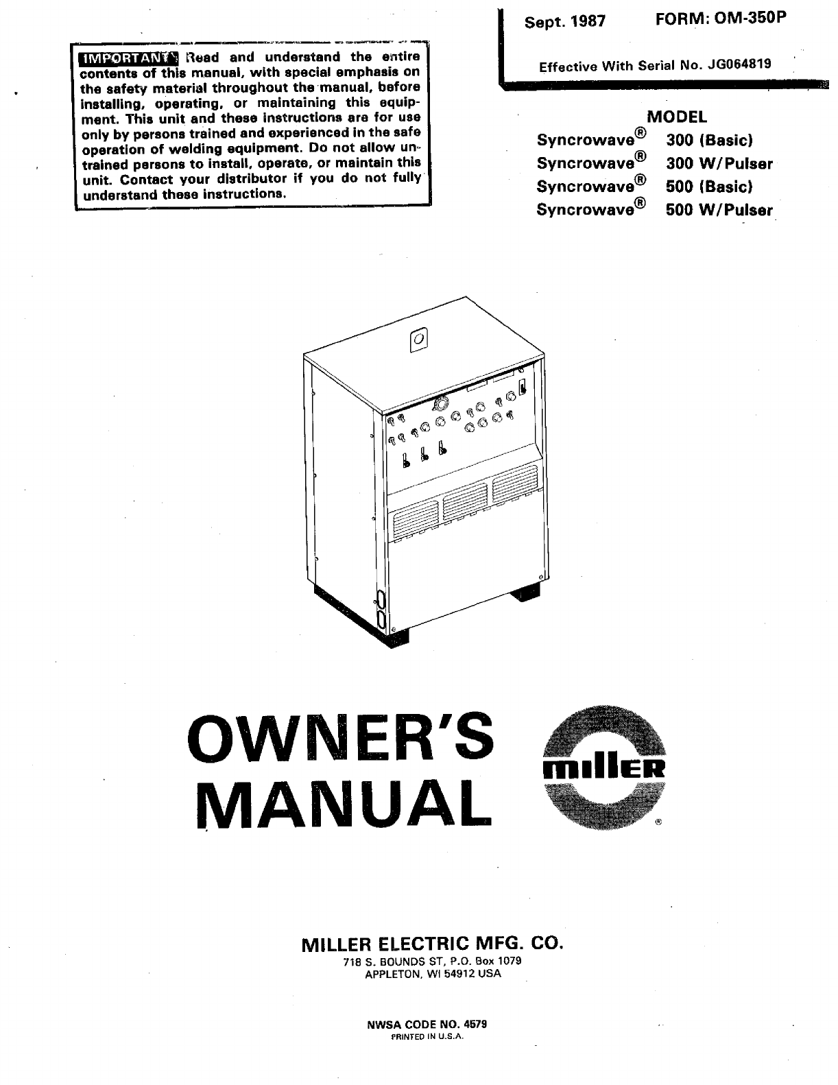 User Manual: Miller-Syncrowave-300-Manual Miller