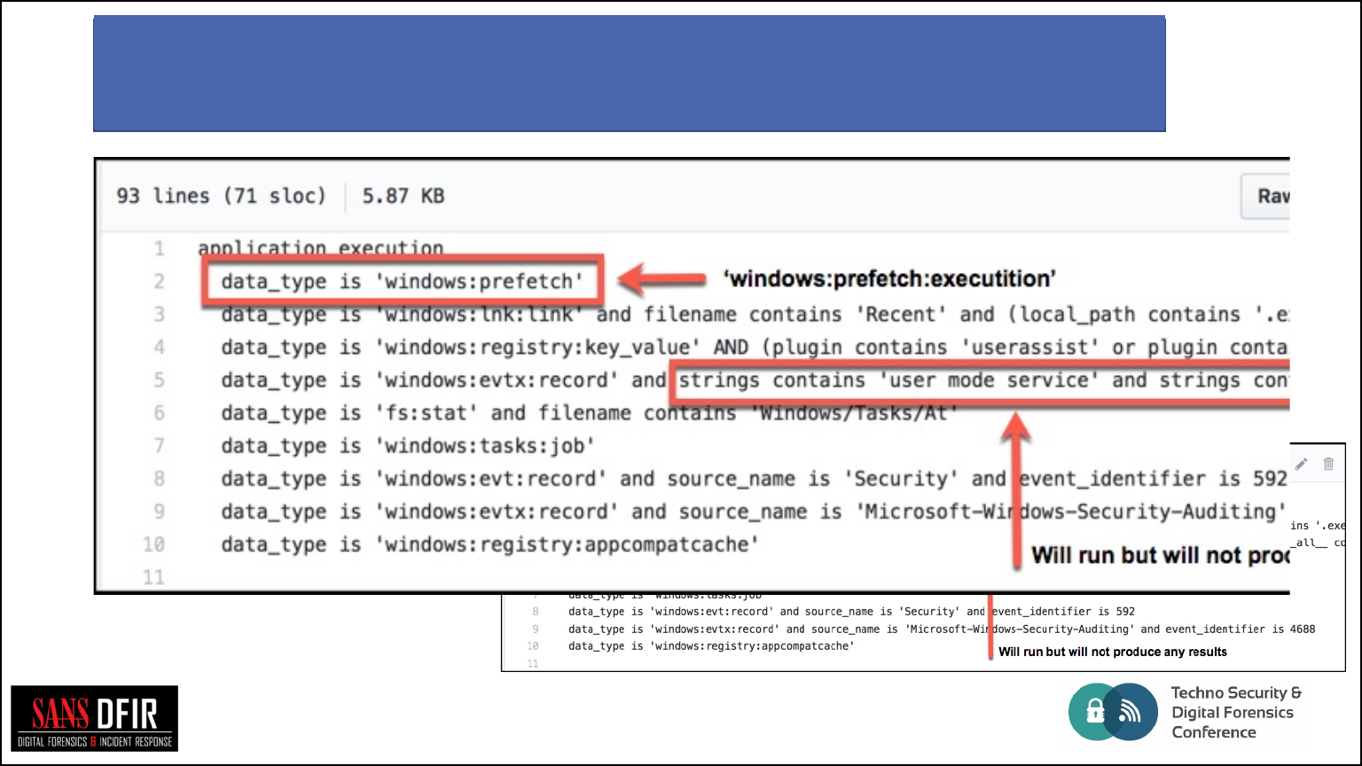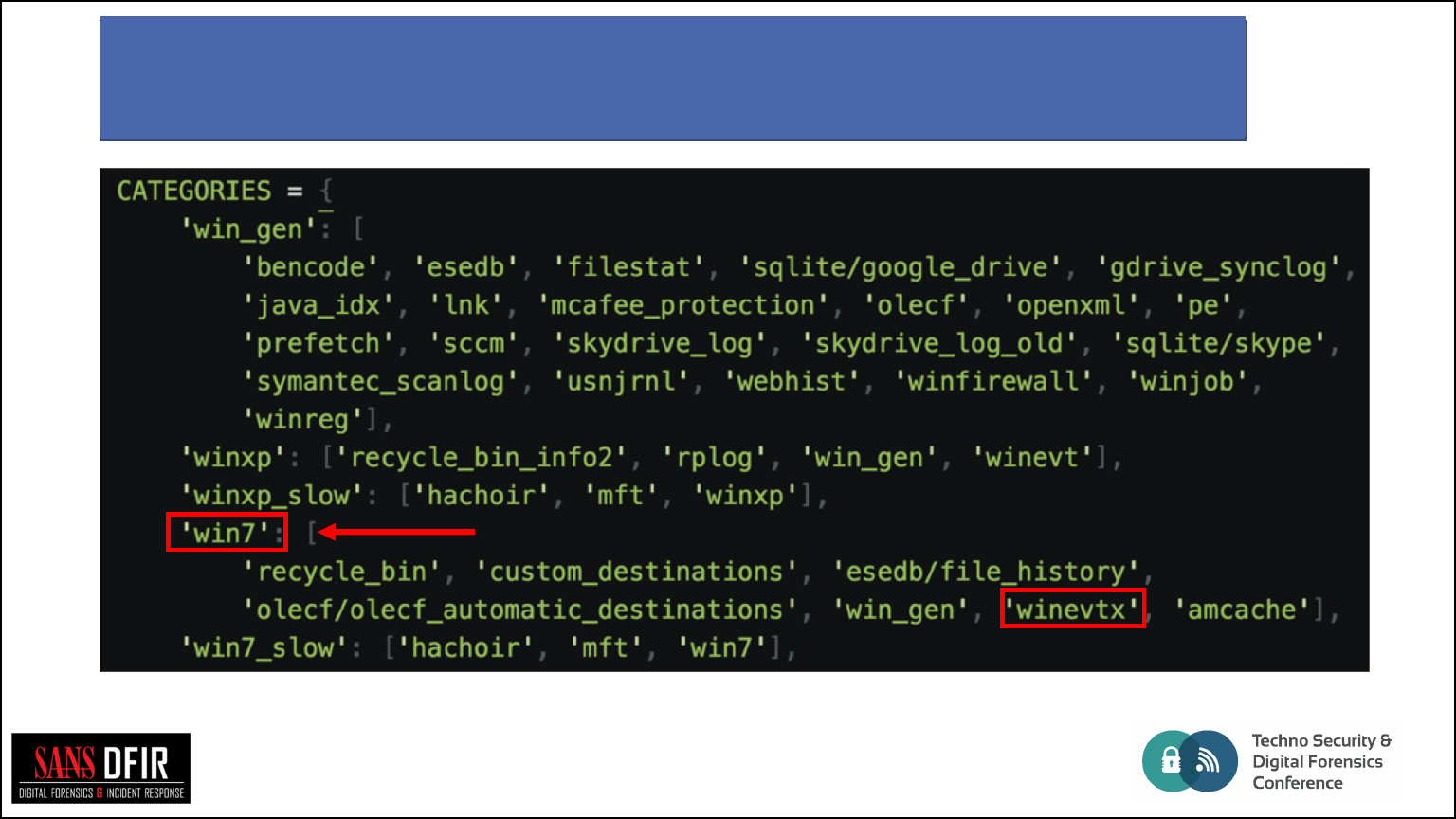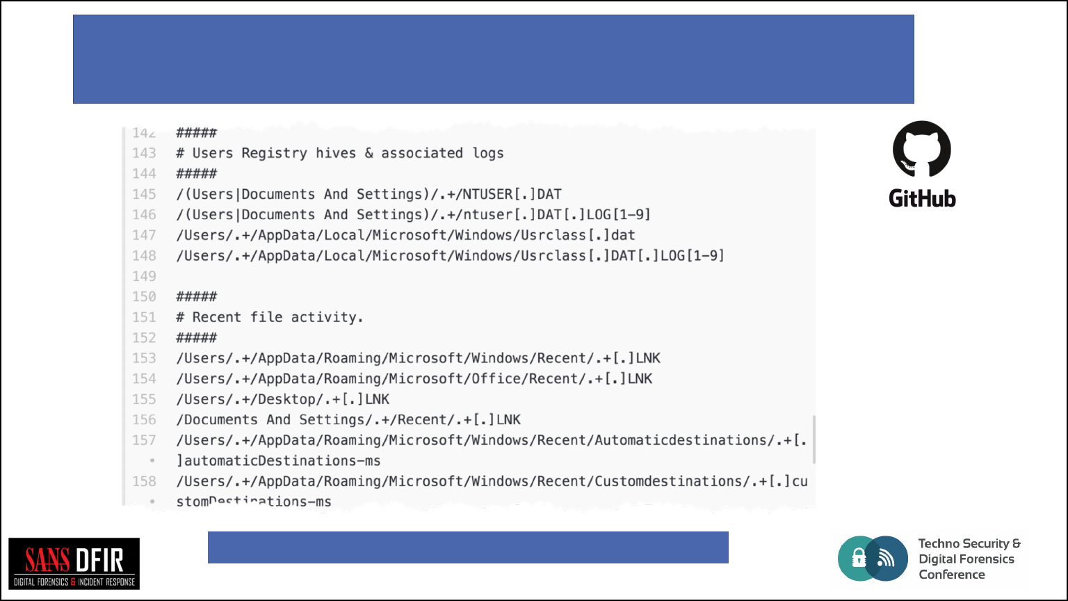 •The sample file filter, tag_windows.txt, on Plaso GitHub has some