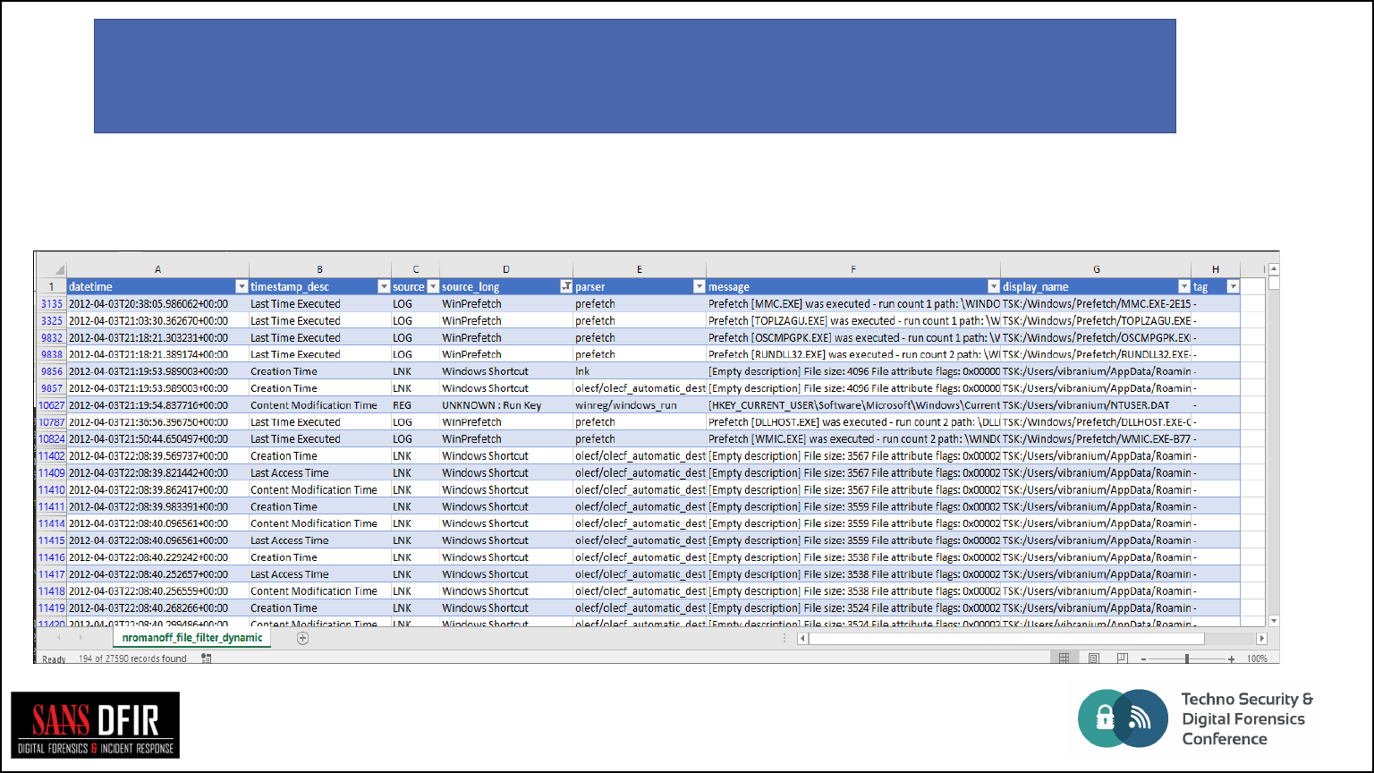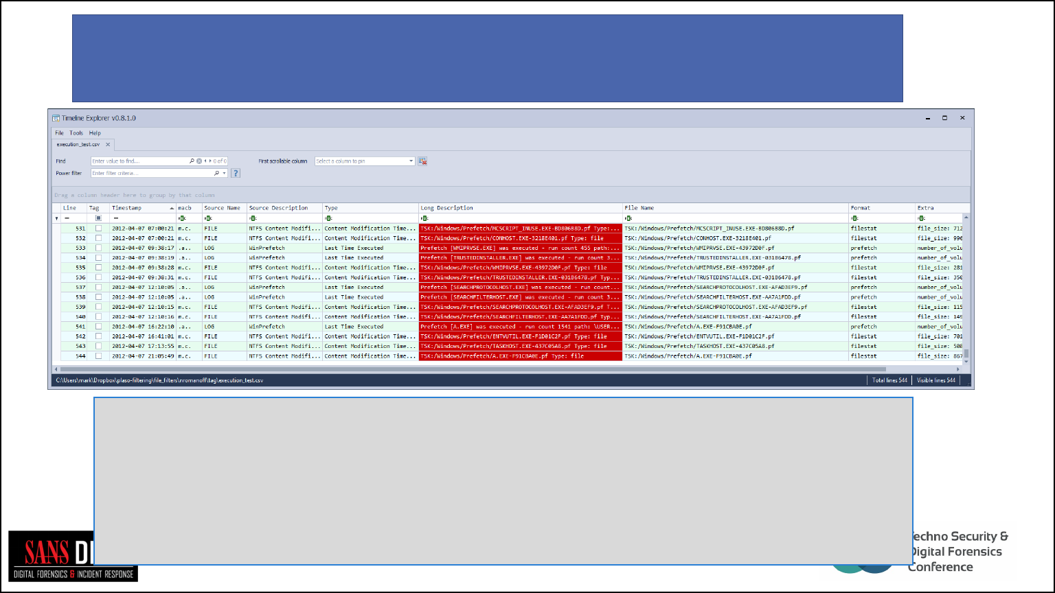 psort -z "UTC" -o l2tcsv -w execution_test.csv file_filter.plaso "message contains 'Prefetch {' or
