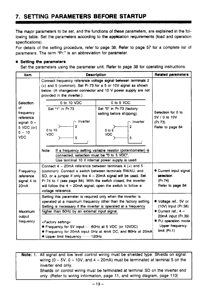 - 7. SETTlNG PARAMETERS BEFORE STARTUP