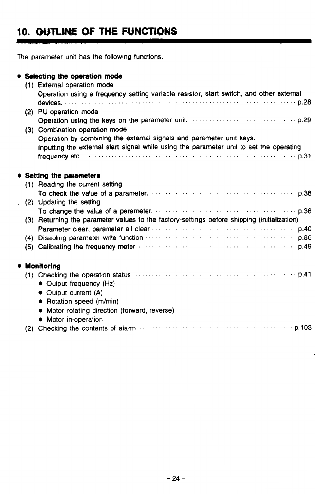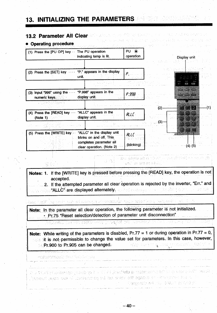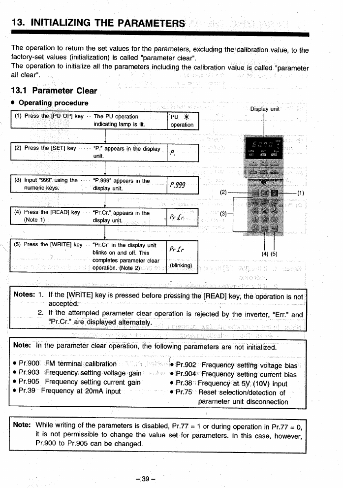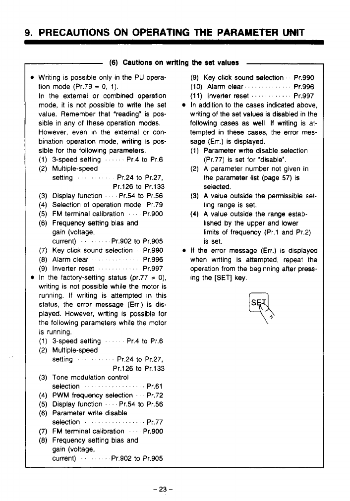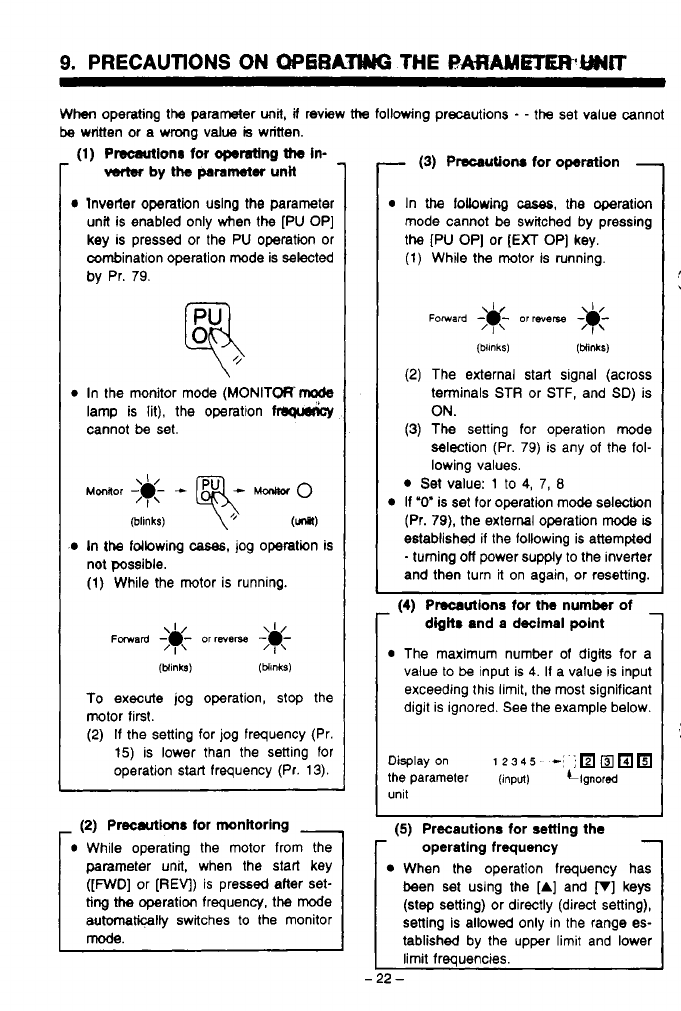 - 9. PRECAUTIONS ON OPERATING THE PARAMETER UNIT