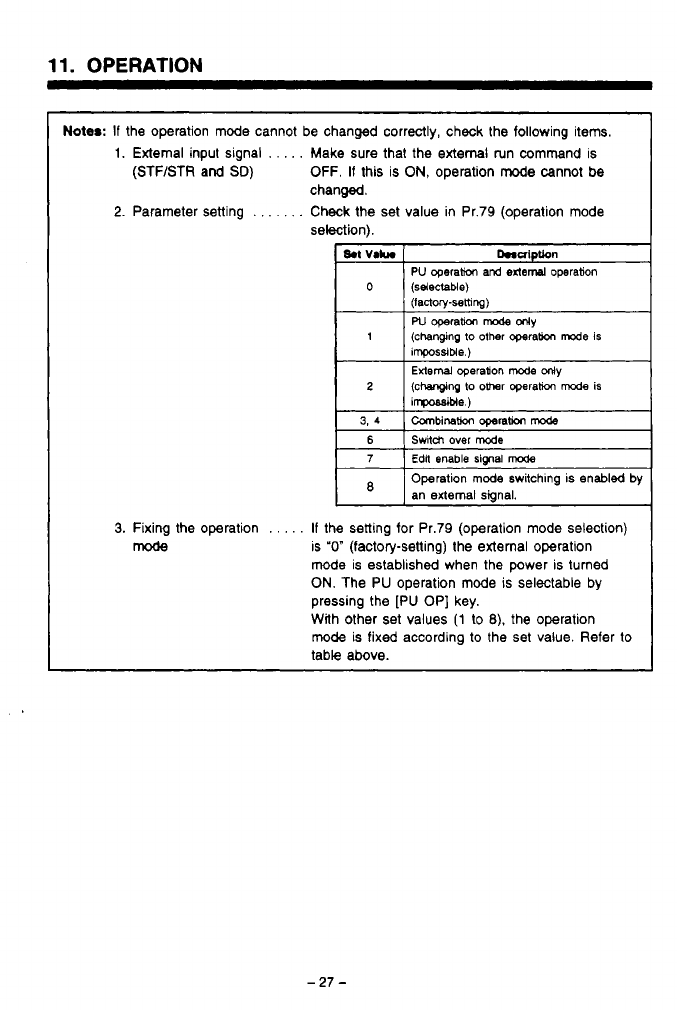 - 11.4 PU Operation Mode (Operation Using the Parameter Unit)
