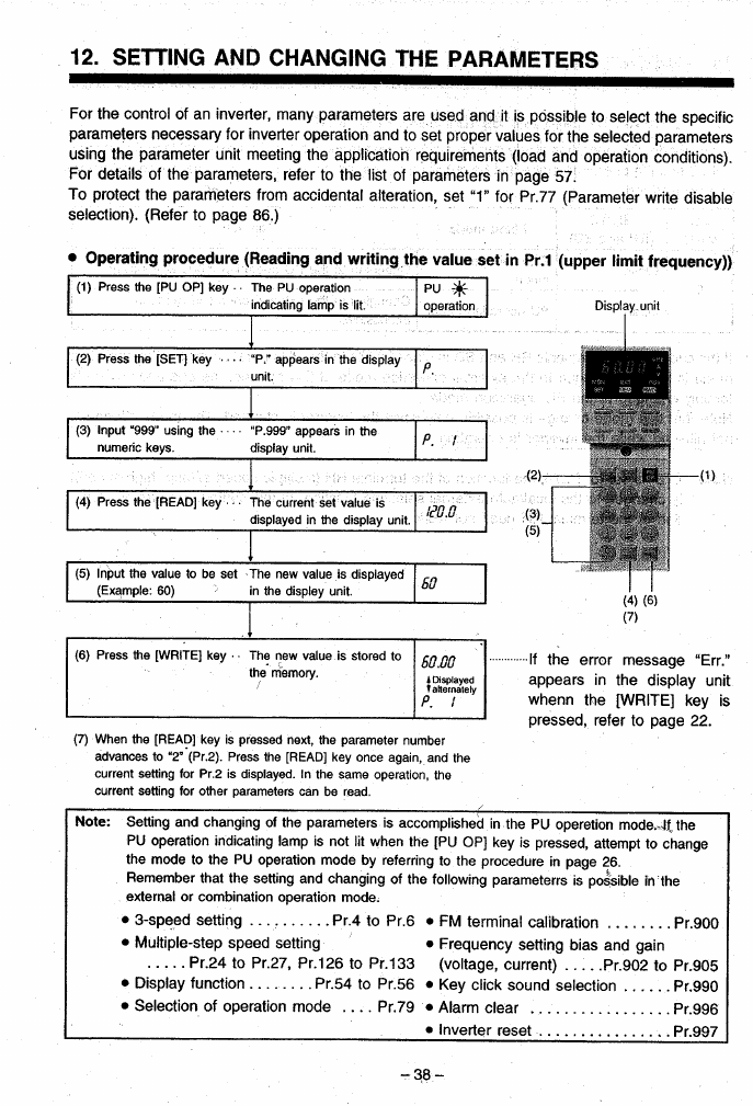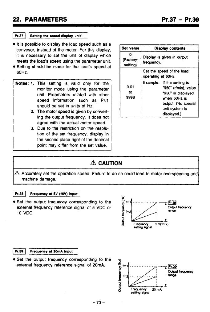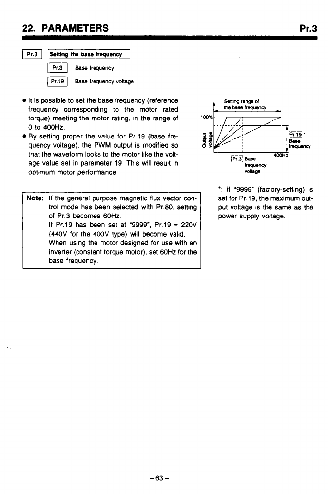 - Pr.1, Pr2: Setting the upper/lower limit of frequency
