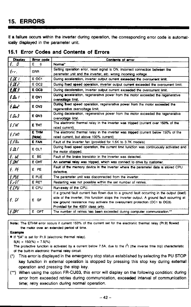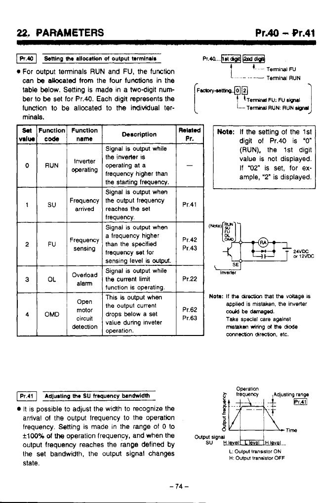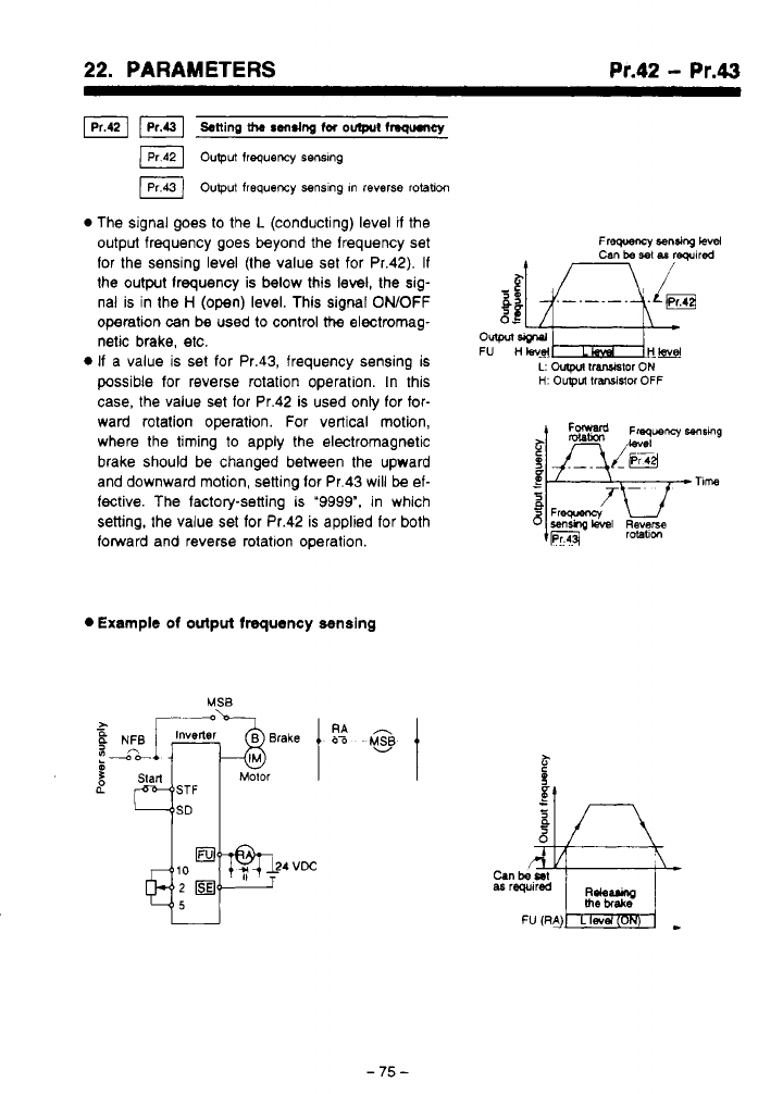 - Pr.42, Pr43: Setting the sensing for output frequency
