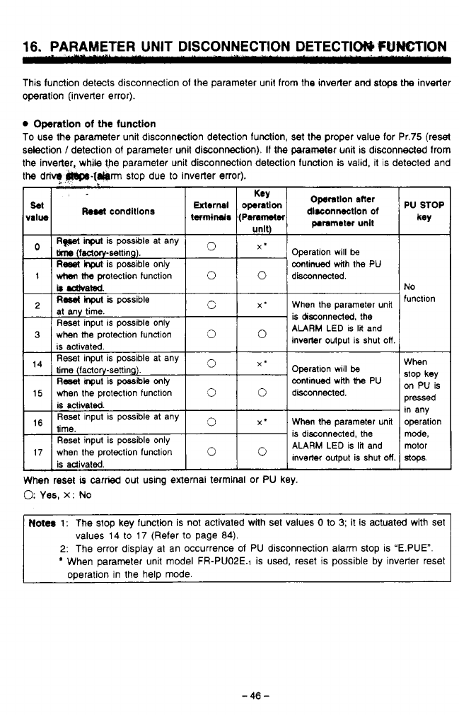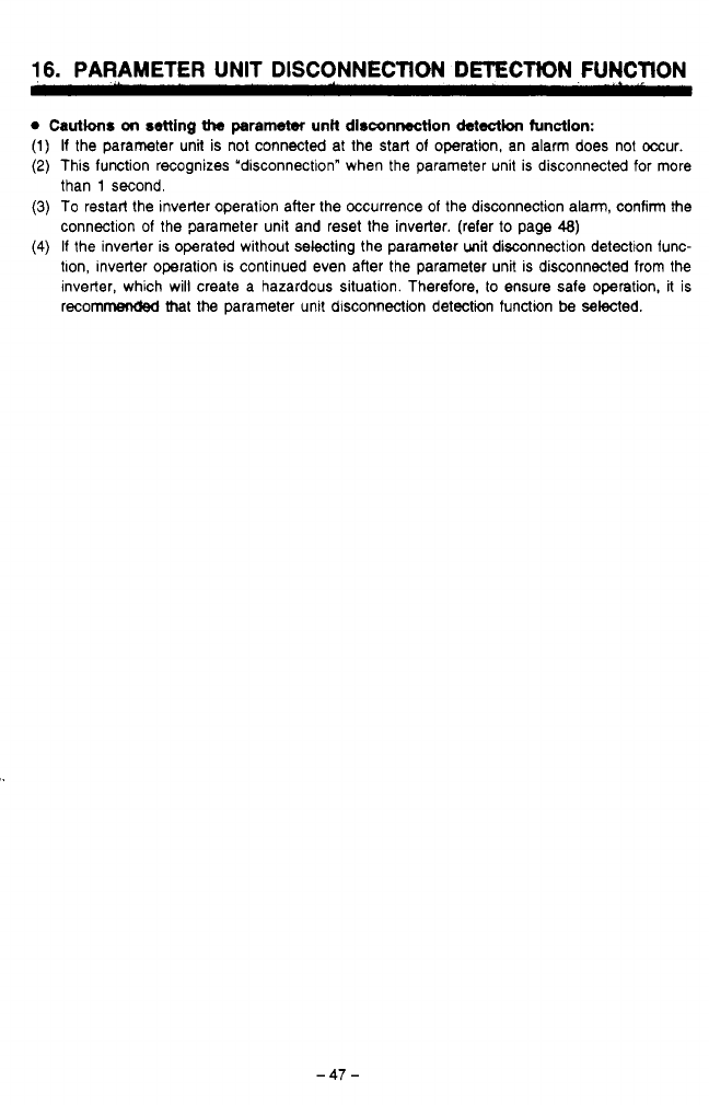- 16. PARAMETER UNIT DISCONNECTION DETECTION FUNCTION