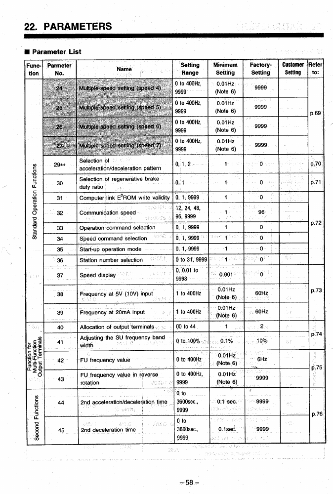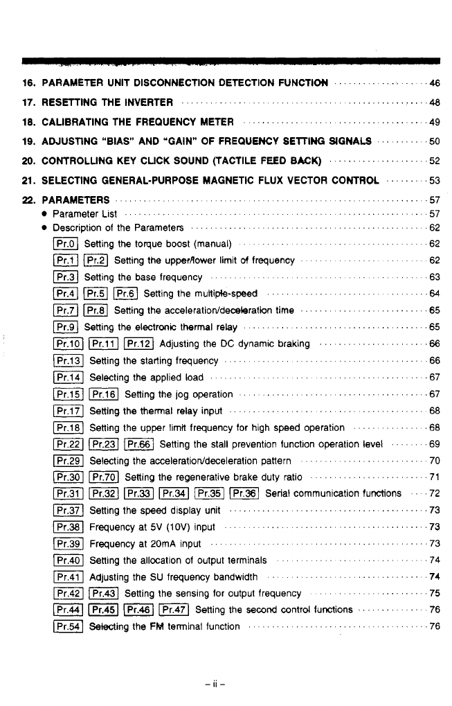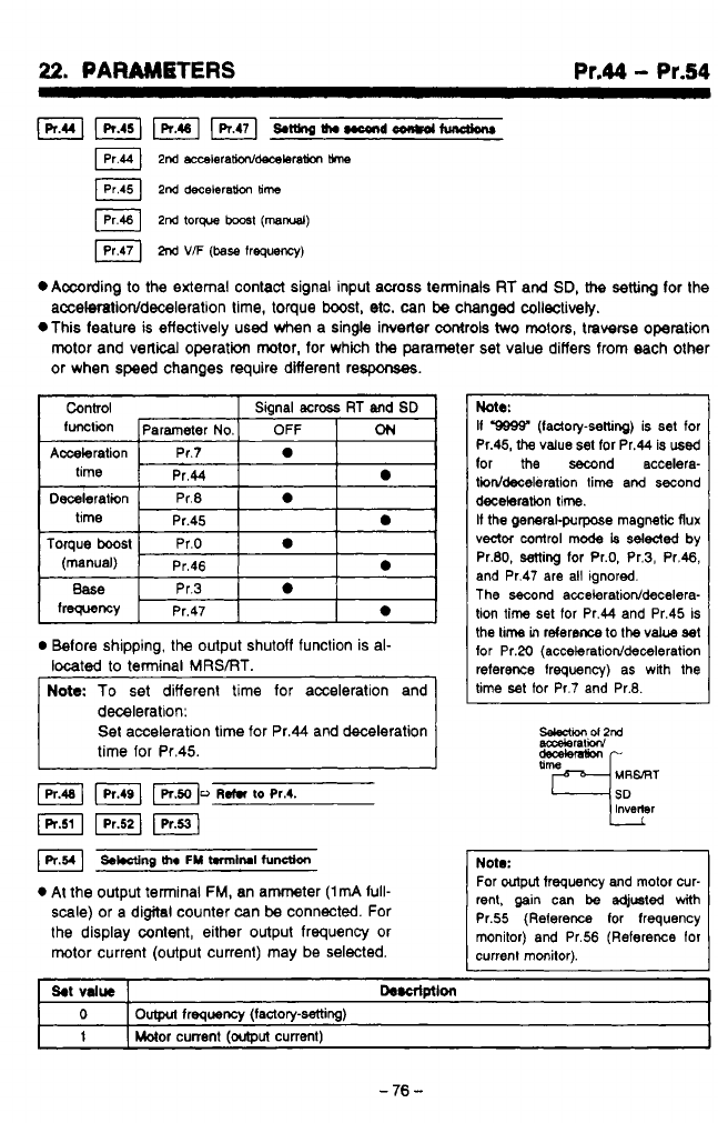 - Pr.44, Pr.45, Pr.46, Pr.47: Setting the second control functions
