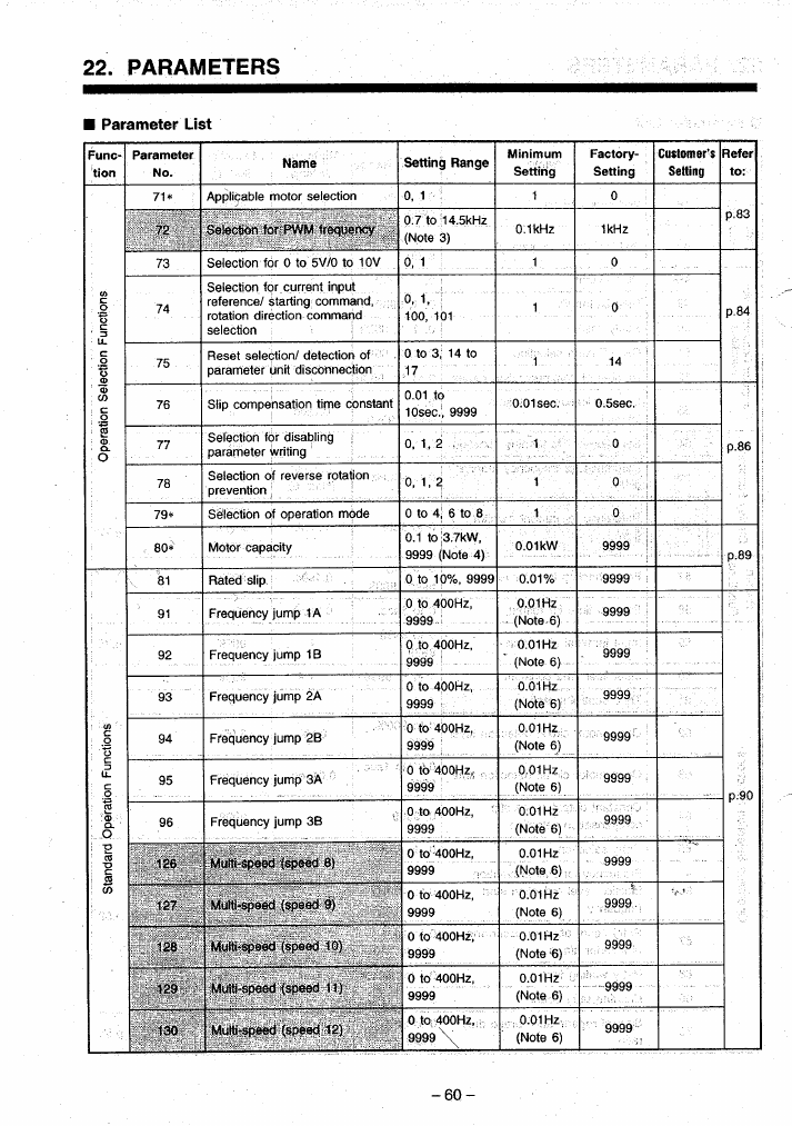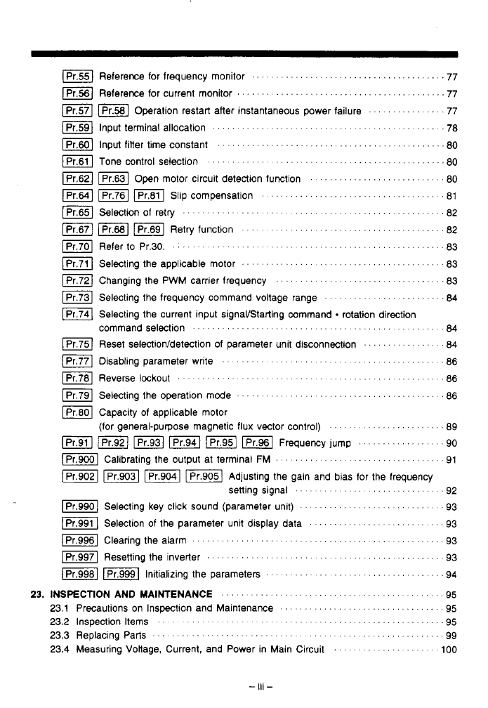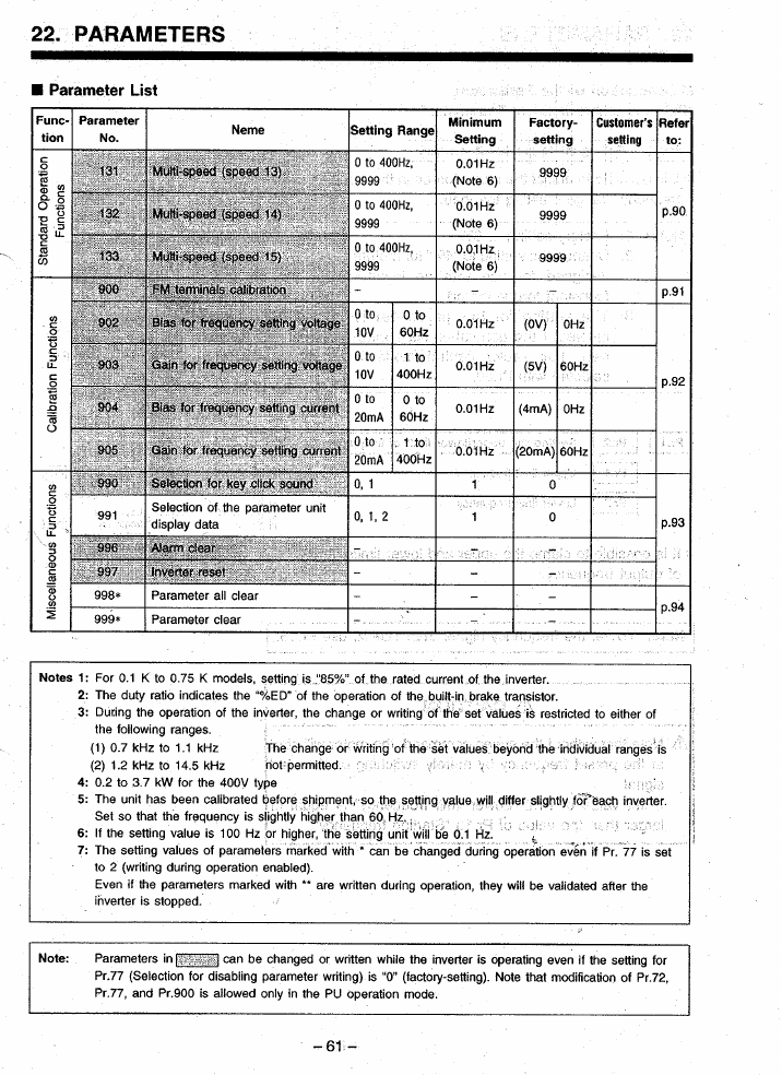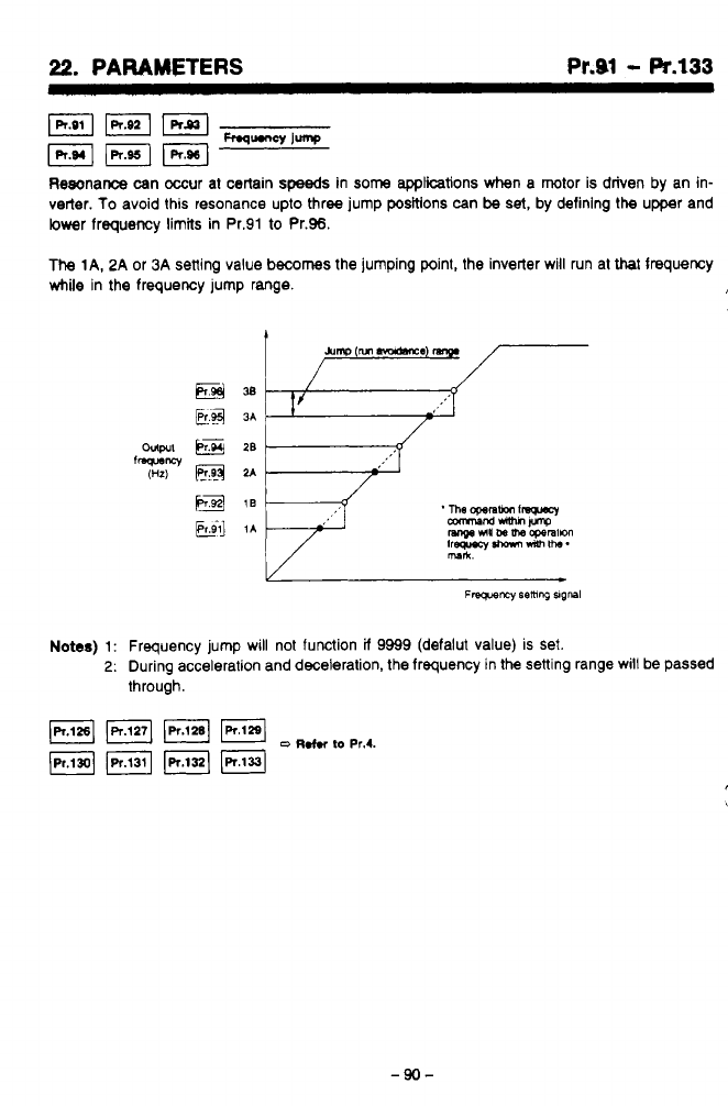 - Pr.91, Pr.92, Pr.93, Pr.94, Pr.95, Pr.96: Frequency jump