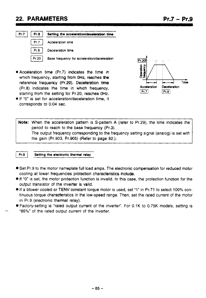- Pr.7, Pr.8: Setting the acceleration/deceleration time