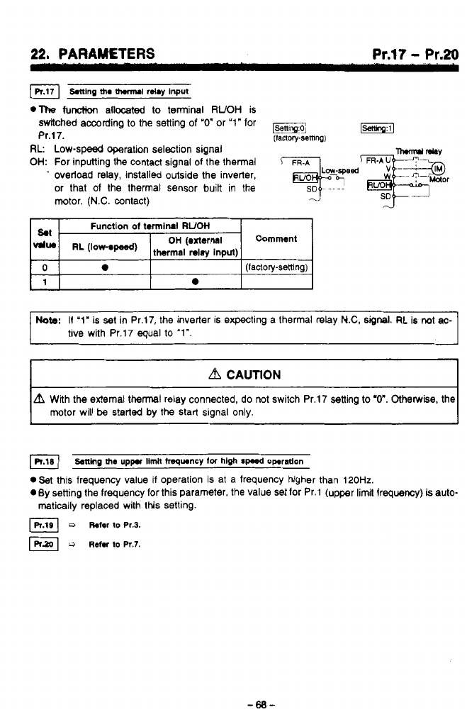 - Pr.18: Setting the upper limit frequency for high speed operation