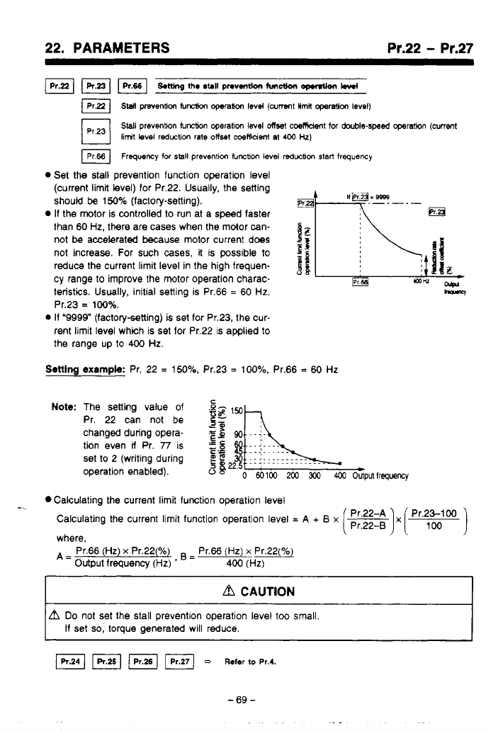 - Pr.22, Pr.23, Pr.66: Setting the stall prevention function operation level