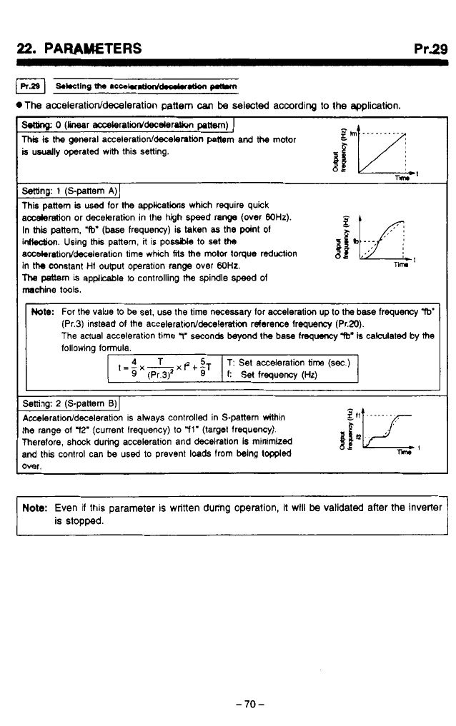 - Pr.29: Selecting the acceleration/deceleration pattern
