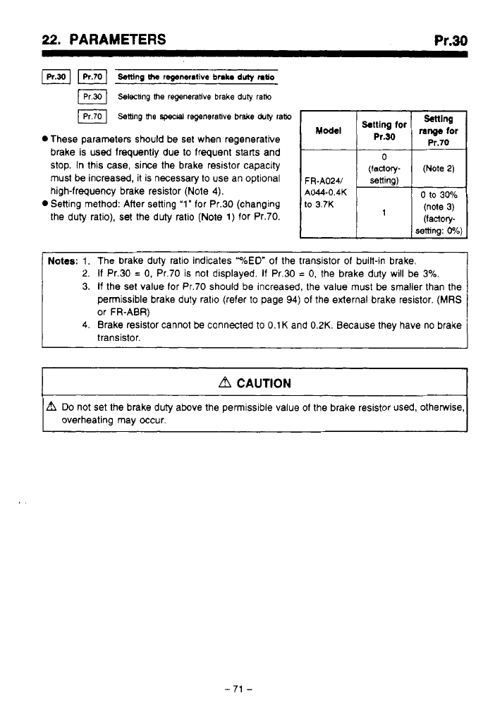 - Pr.30, Pr.70: Setting the regenerative brake duty ratio