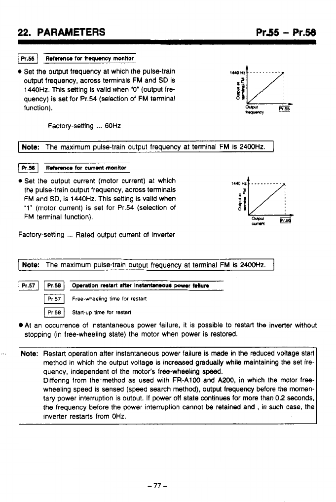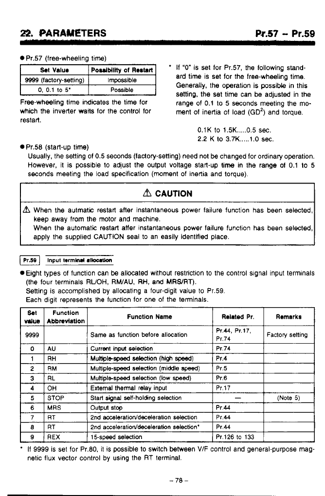 - Pr.57, Pr.58: Operation restart after instantaneous power failure