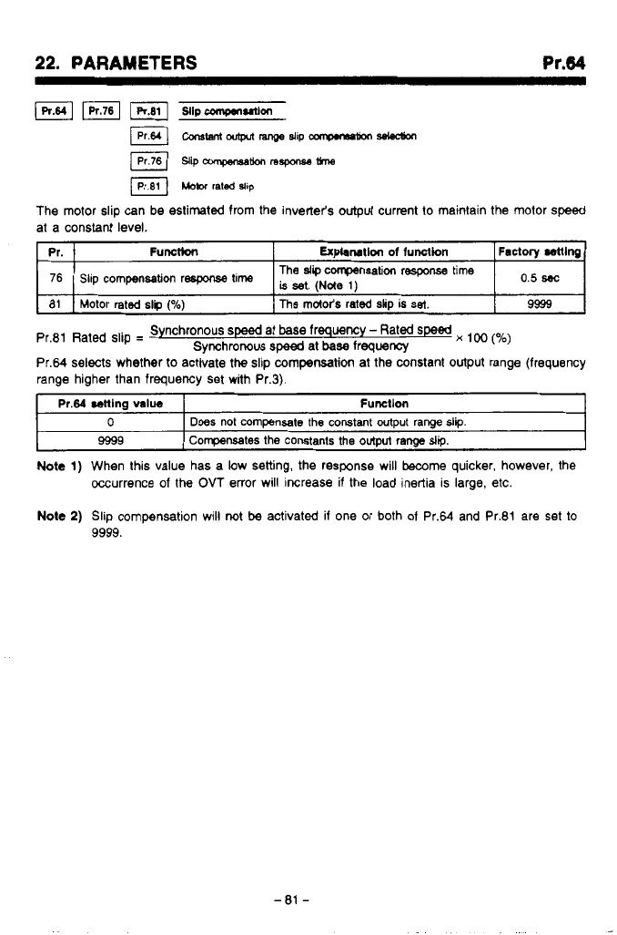 - Pr.64, Pr76, Pr.81: Slip compensation
