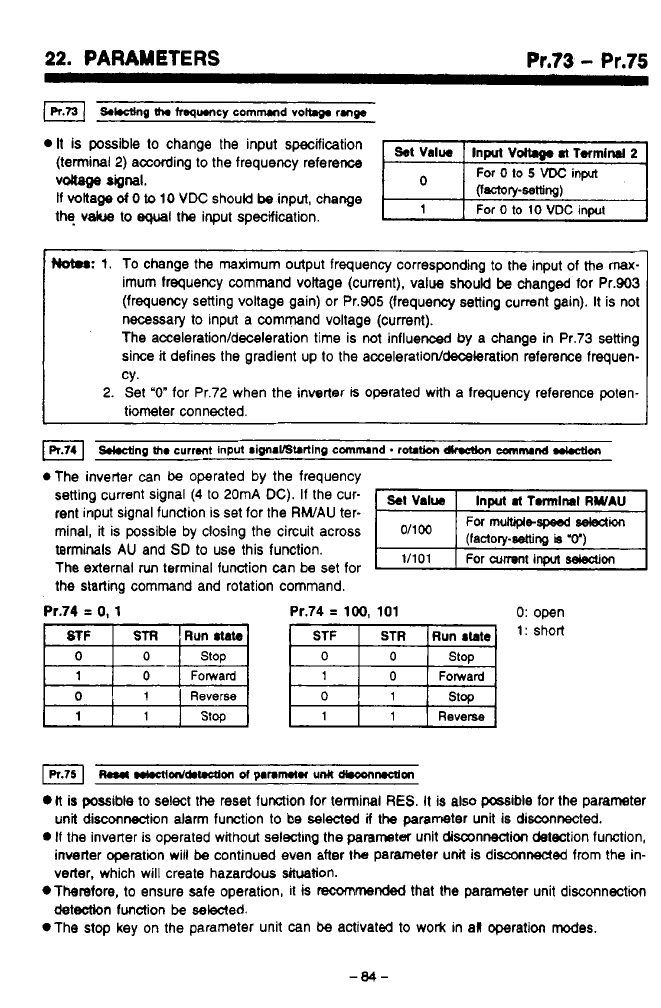 - Pr.74: Selecting the current input signal/Starting command - rotation direction command selection