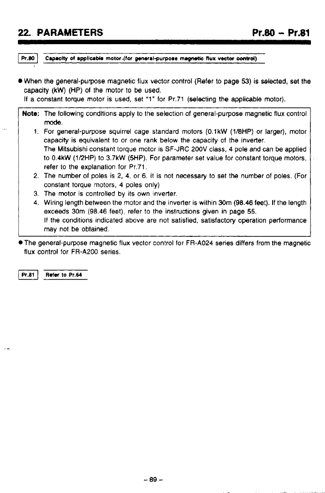 - Pr.80: Capacity of applicable motor (for general-purpose magnetic flux vector control)