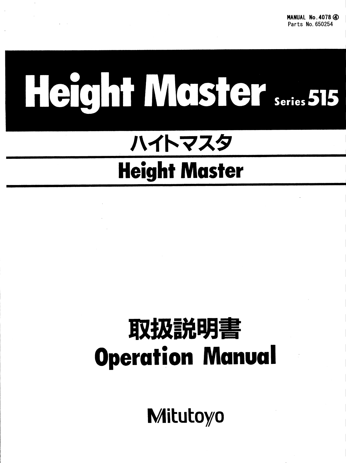 User Manual: Mitutoyo-Height-Master Mitutoyo