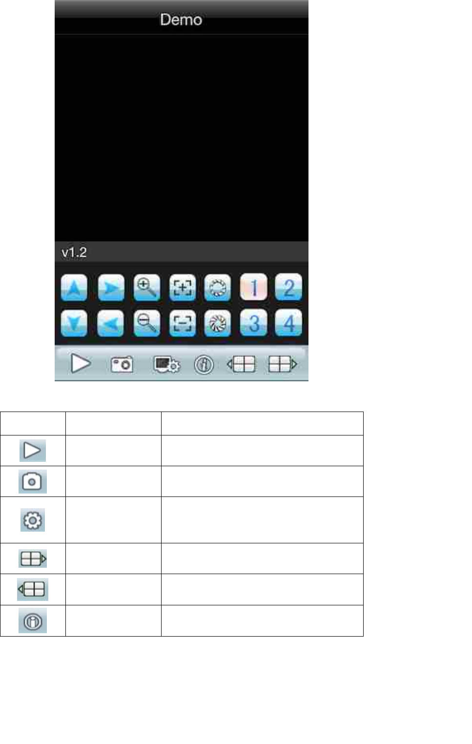 Button revelant function as follows: