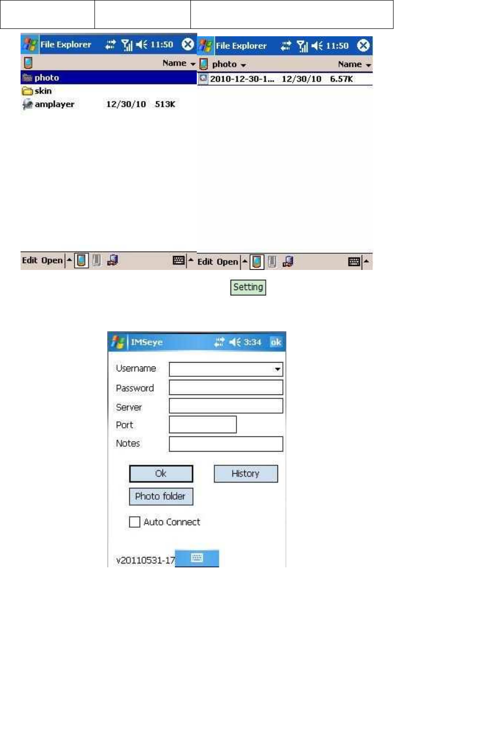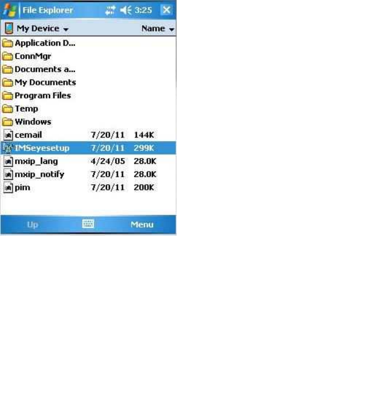 1) Copy the IMSeyesetup.cab to windows mobile cell phone across the data line