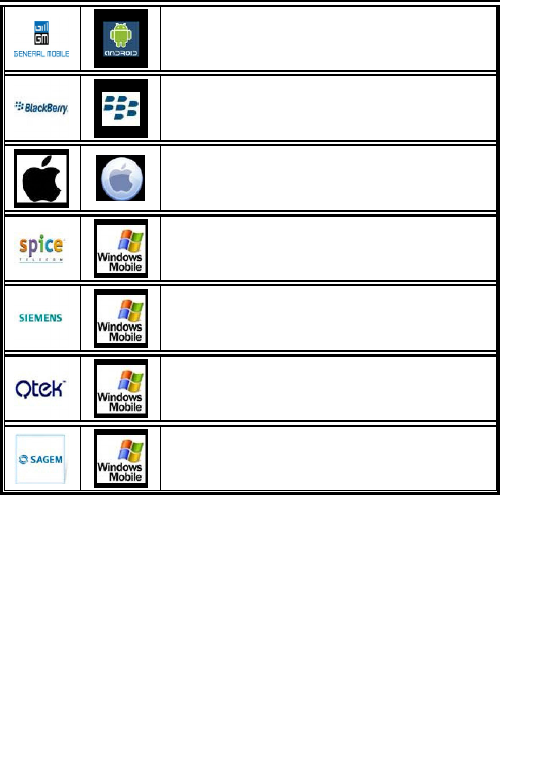 Supported cell phone type: