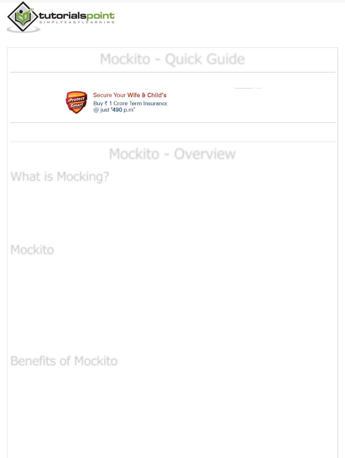 Mocking is a way to test the functionality of a class in isolation. Mocking does not require a
