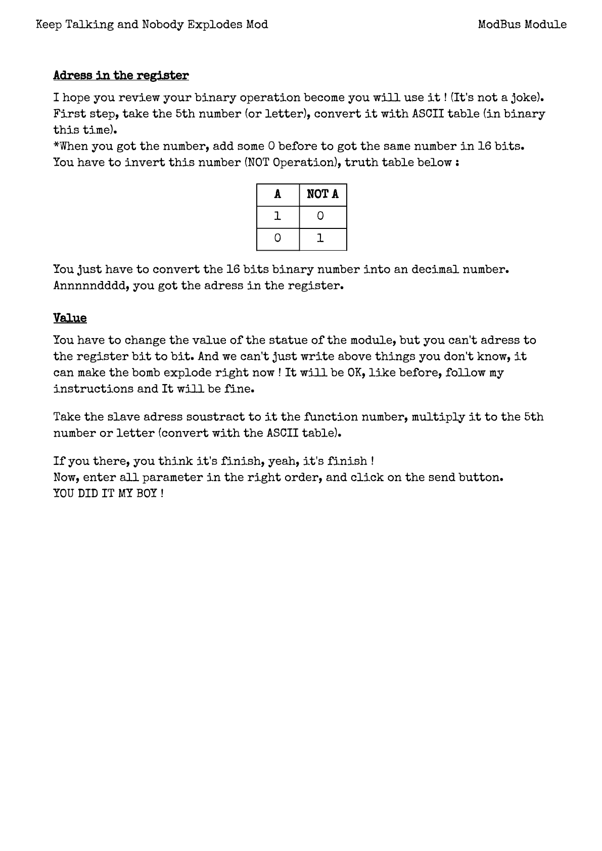 ModBus Module â•fl Keep Talking And Nobody Explodes Mod Bus Manual PDF V1.0