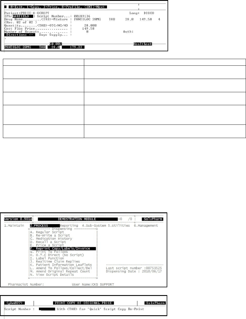This option will allow you to reprint a script copy, medication labels, trailer labels, delivery