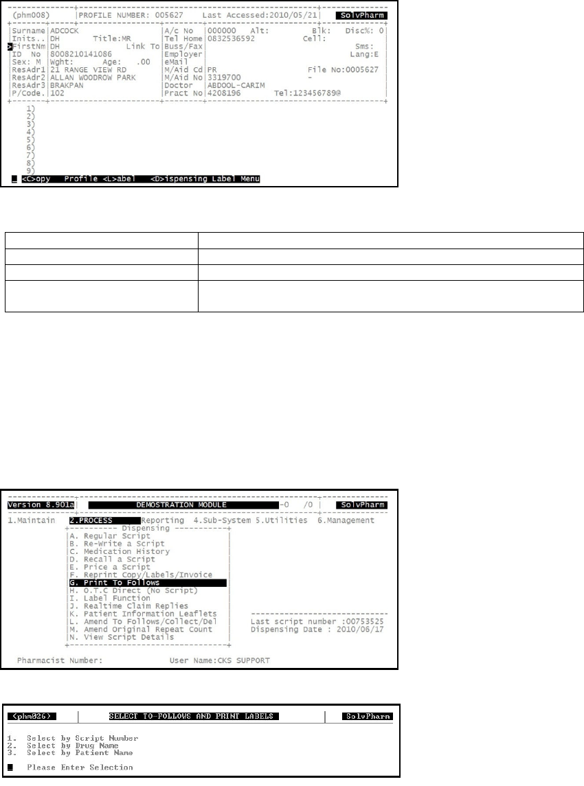 This option will allow you to print the ‘To Follows’ that need to be prepared. It will also