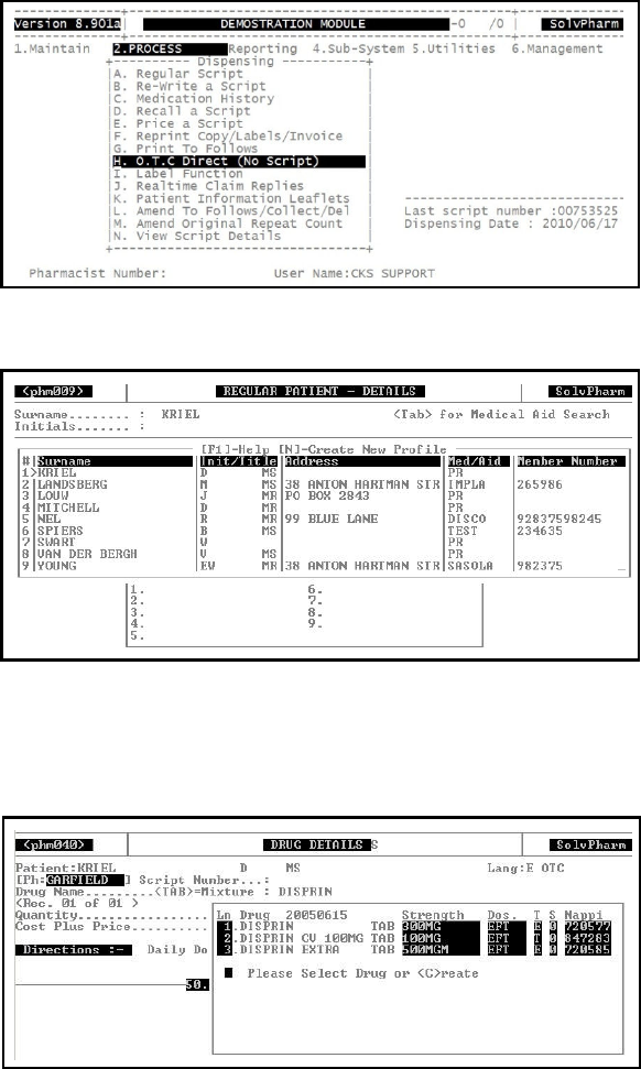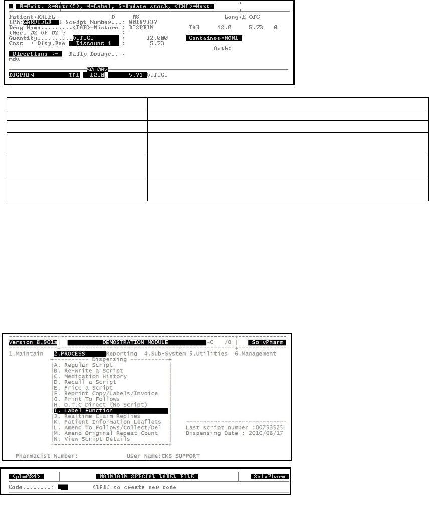 Use this option to dispense OTC scripts. This option does not print a copy.