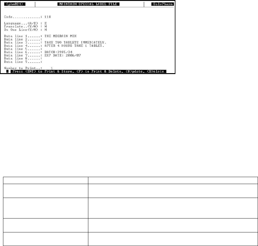 < D > Dispensing Label Menu  This will give you the option to reprint any of the labels available