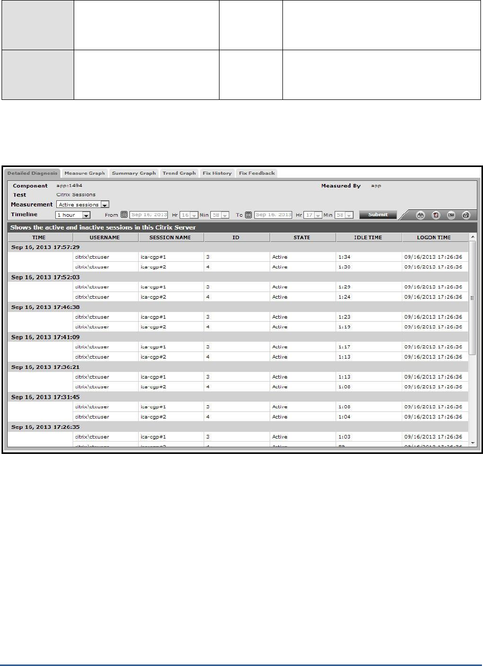 Figure 2.6: The detailed diagnosis of the Active Sessions measure of the Citrix XenDesktop Apps ....................................................................... 15