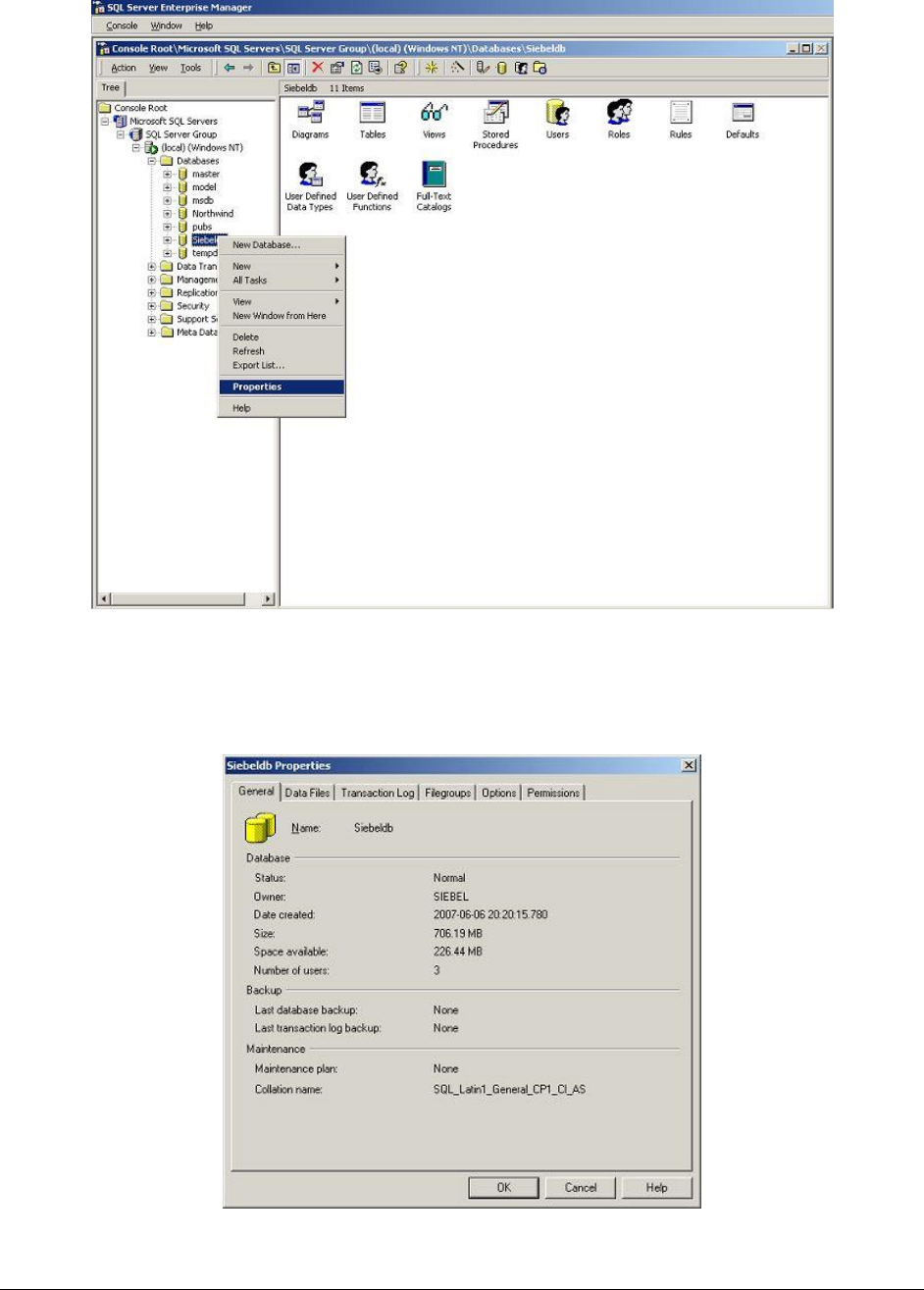 Figure 4.4: Selecting the Siebel database Properties................................................................................................................................................ 28