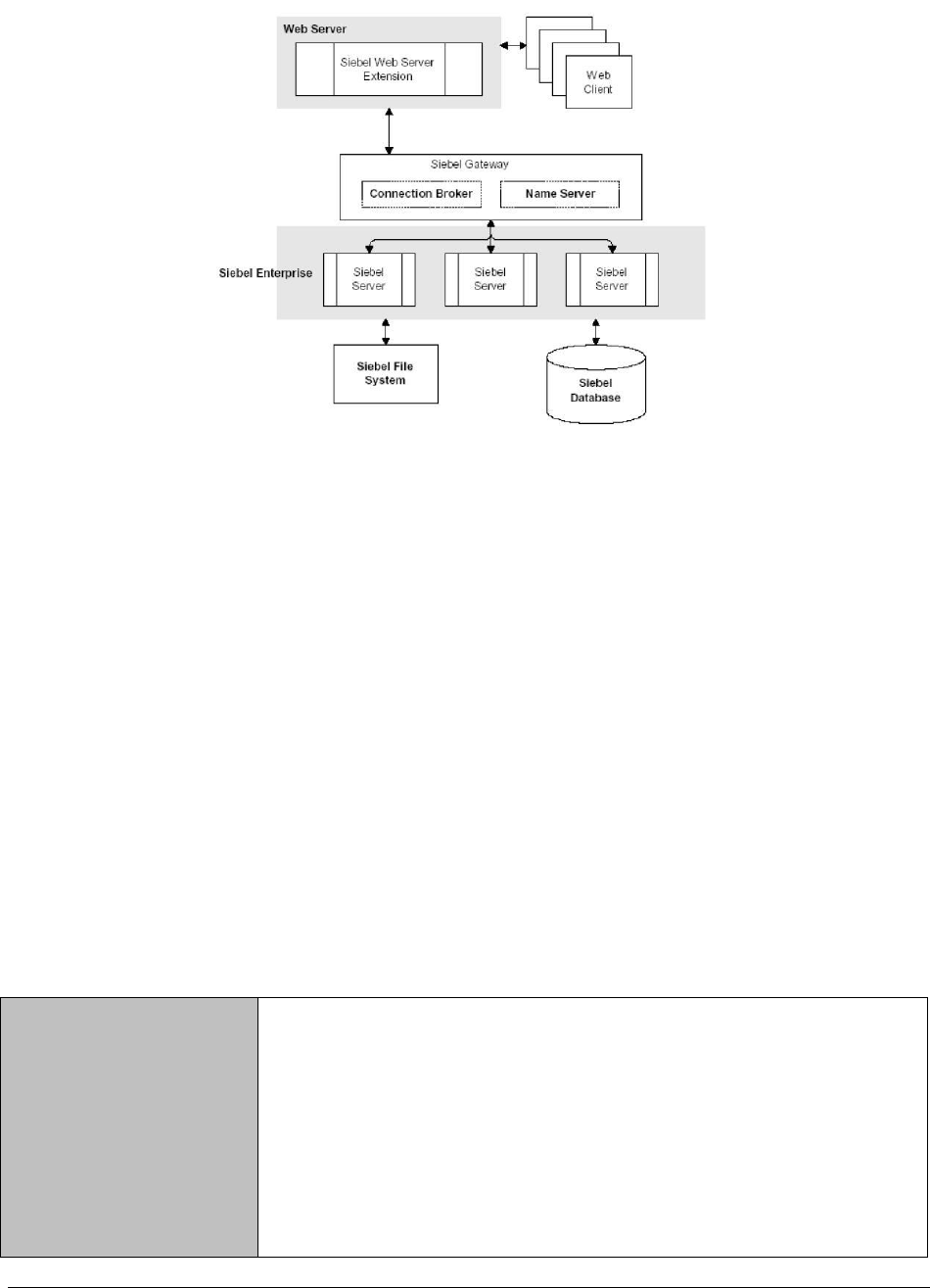 requests to a Siebel web server, a Siebel gateway that grants the web requests access to the Siebel